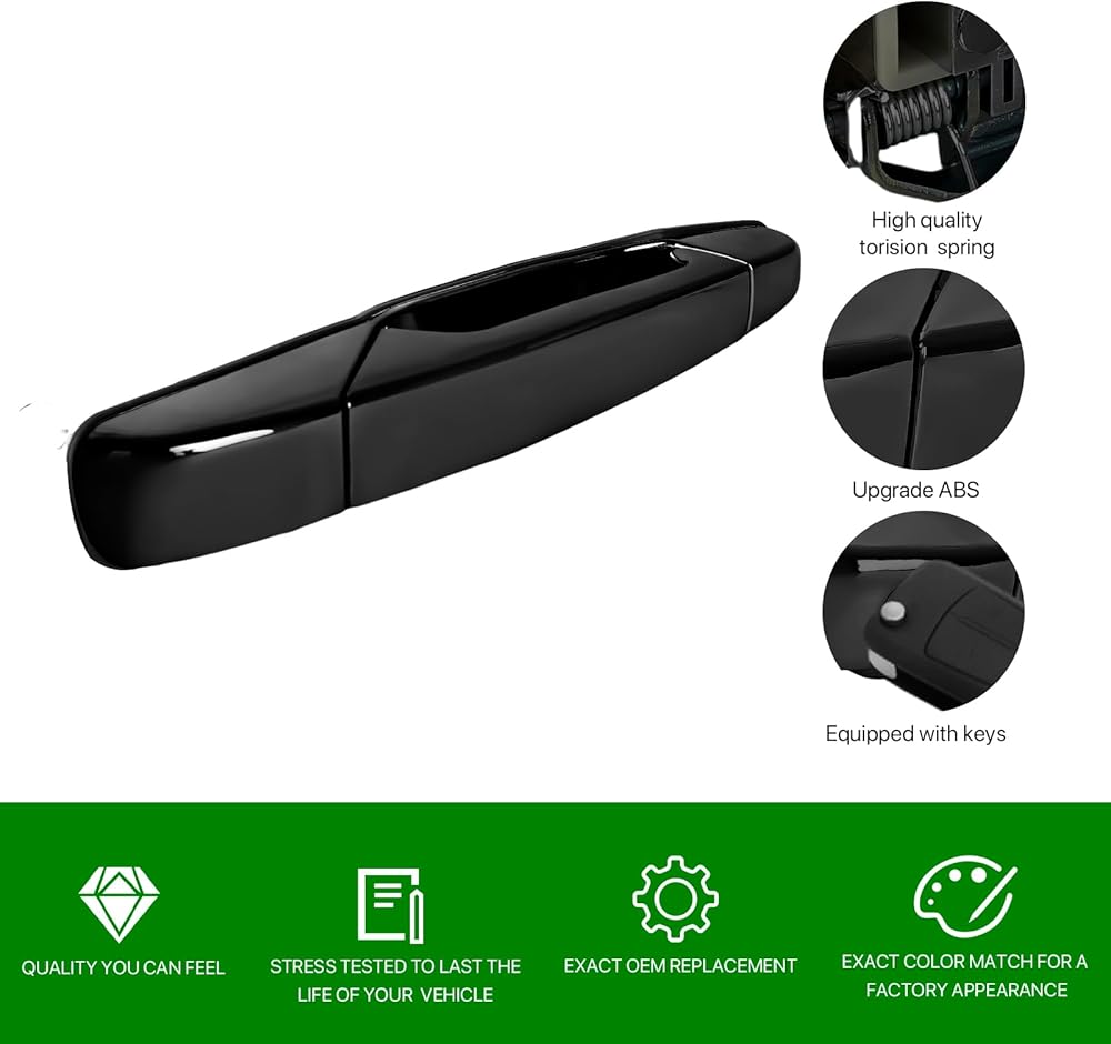 【منتج مطور】: بالمقارنة مع جزء OEM، خضع مقبض الباب الخاص بنا لترقيات المواد. نحن نستخدم بلاستيك ABS عالي الجودة وقمنا باستبدال بعض الأجزاء البلاستيكية بهيكل أكثر متانة من سبائك الزنك. بالإضافة إلى ذلك، قمنا أيضًا بإجراء طلاء الكروم لضمان أداء طويل الأمد وتزويدك بمتانة فائقة.