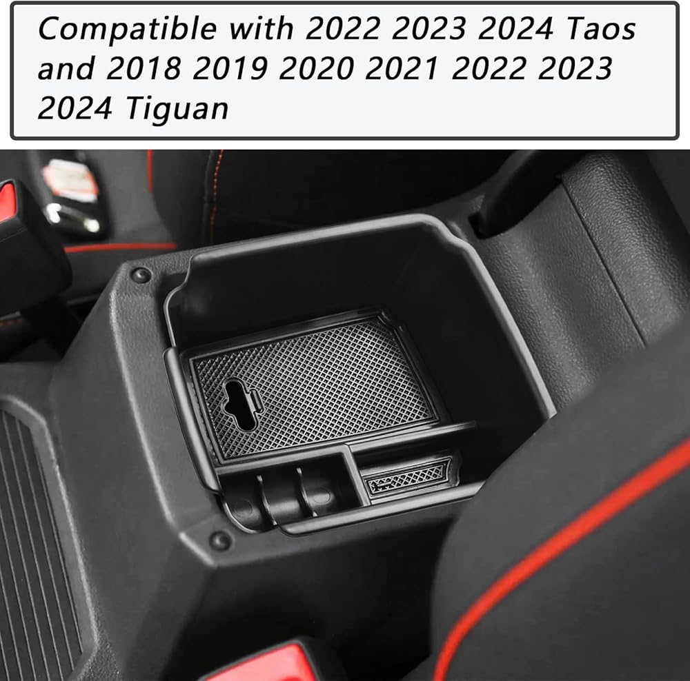 منظم وحدة التحكم المركزية EDBETOS متوافق مع 2022-2024 VW Taos وملحقات Tiguan 2018-2023 2024 S/SE/SEL/SE R-Line/SEL R-Line، صندوق مسند ذراع تخزين ثانوي، مادة ABS، أسود