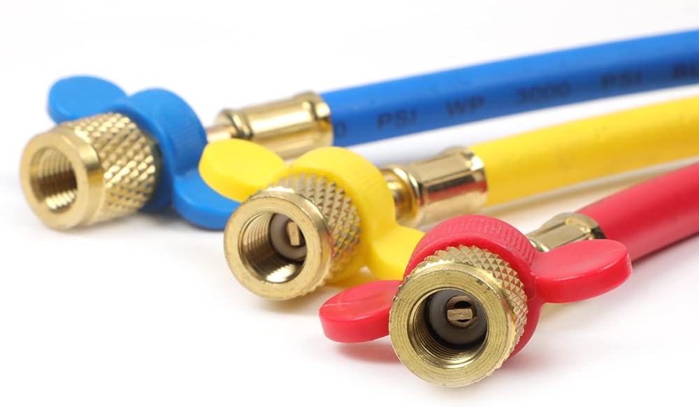 【مجموعة واسعة من التطبيقات】تتوافق خراطيم التبريد مع مبردات R134A R12 R22 R600A R404A R502، وما إلى ذلك. خراطيم وتركيبات التدفئة والتهوية وتكييف الهواء (HVAC) مناسبة لمقاييس التبريد، ومقاييس التيار المتردد المتعددة ومجموعة قياسات متعددة رقمية للتكييف، مثالية لشحن سائل التبريد أو الفريون. إصلاح وصيانة تكييف الهواء للمنزل/المكتب/السيارة.