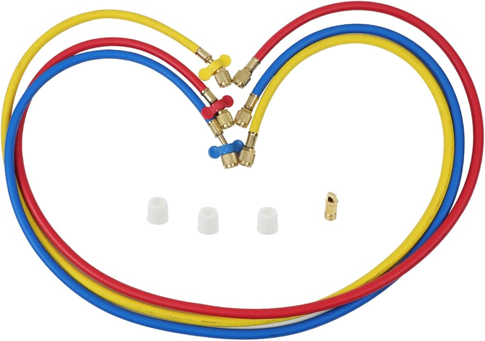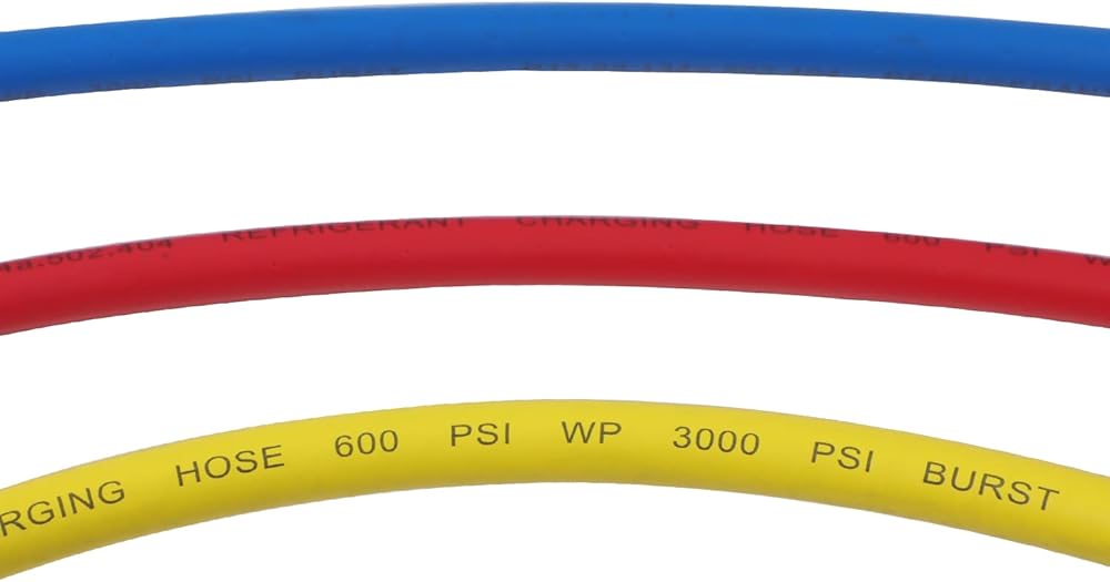 【5 أقدام/1.5 م/60 بوصة】أقصى ضغط عمل: 600 رطل لكل بوصة مربعة، ضغط الانفجار: 3000 رطل لكل بوصة مربعة. الخرطوم الأزرق للضغط المنخفض، والخرطوم الأحمر للضغط العالي، والأصفر لمضخة التبريد أو التفريغ. تعتبر خراطيم التبريد مناسبة لمعظم مشاريع فحص وشحن أنظمة التدفئة والتهوية وتكييف الهواء (AC HVAC).
