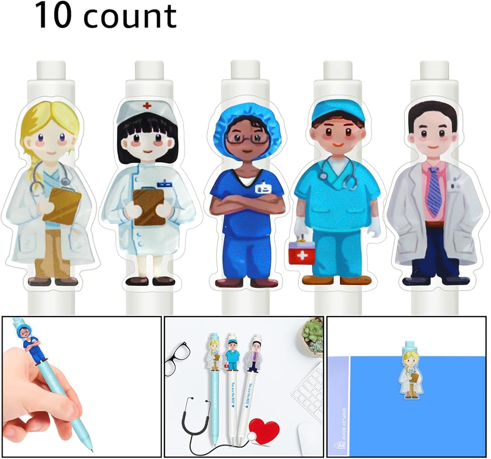 أقلام ممرضة لطيفة هدايا تقدير للأطباء والممرضات والعاملين في مجال الرعاية الصحية والتمريض وطلاب المدارس الطبية وهدايا التخرج ومستلزمات مكتب الطبيب حبر جل أسود 0.5 مم (10 قطع) Kauai Sun™