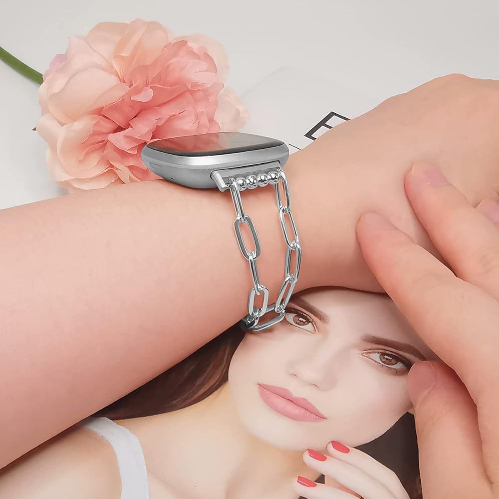 تصميم حصري لبراءة اختراع: متوافق مع سوار ساعة Fitbit Sense/Sense 2/Versa 4/Versa 3؛ يناسب المعصم من 5.5 إلى 8.1 بوصة (ملاحظة: نحن نتقدم بطلب للحصول على براءة اختراع.)
