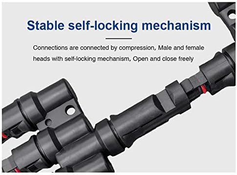 【آمن ومستقر】متوافق مع جميع موصلات الطاقة الشمسية MC-4. تيار التشغيل الأقصى: 50 أمبير؛ الحد الأقصى للجهد: DC1000V؛ درجة الحرارة: -40 درجة مئوية ~ 90 درجة مئوية.