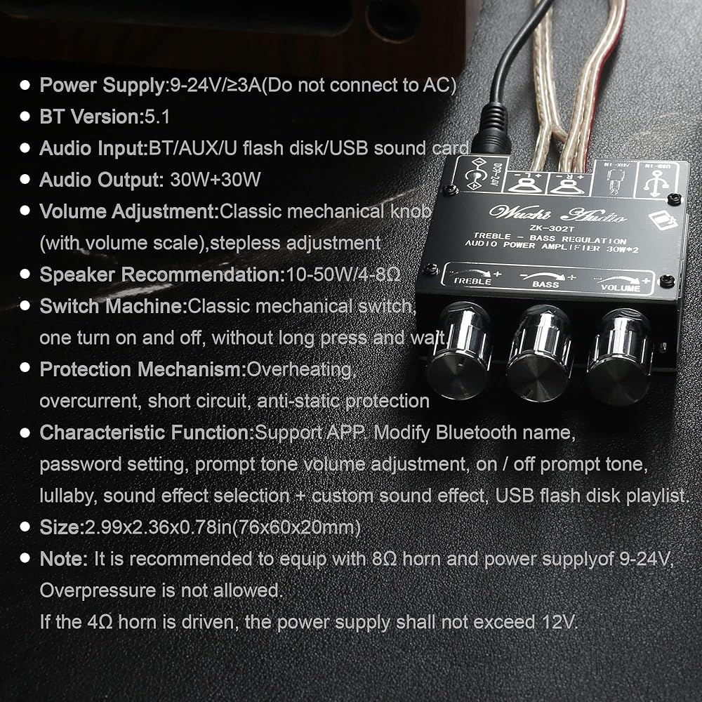 المقدمة: باعتبارها لوحة مضخم طاقة بلوتوث مدمجة 2.0 قناة، تتميز ZK-302T بخصائص الحجم الصغير ومتعددة الوظائف. يمكن أن تصل قوتها القصوى (PMPO) إلى 30 وات + 30 وات، ومدخل الجهد الكهربي الواسع: 9-24 فولت.