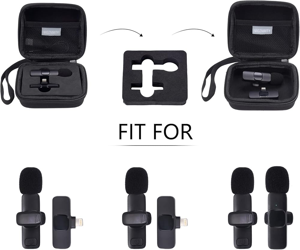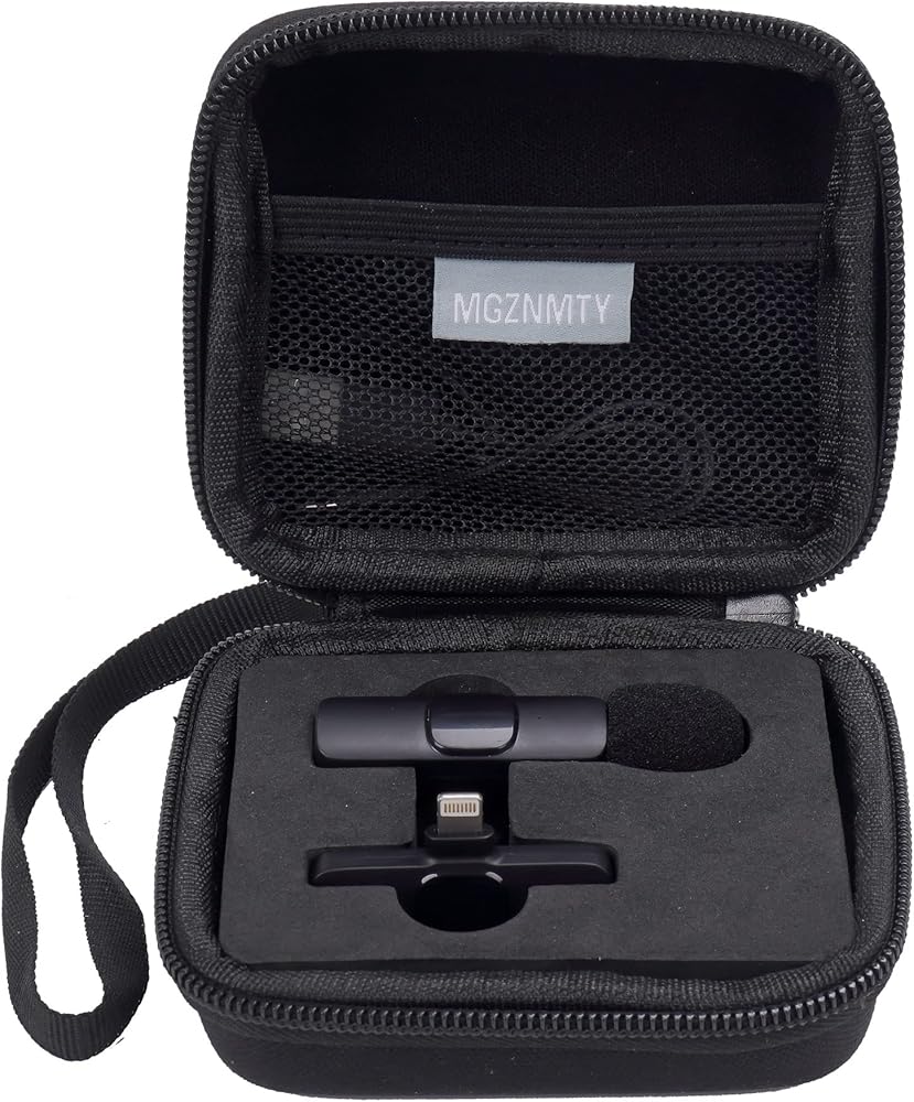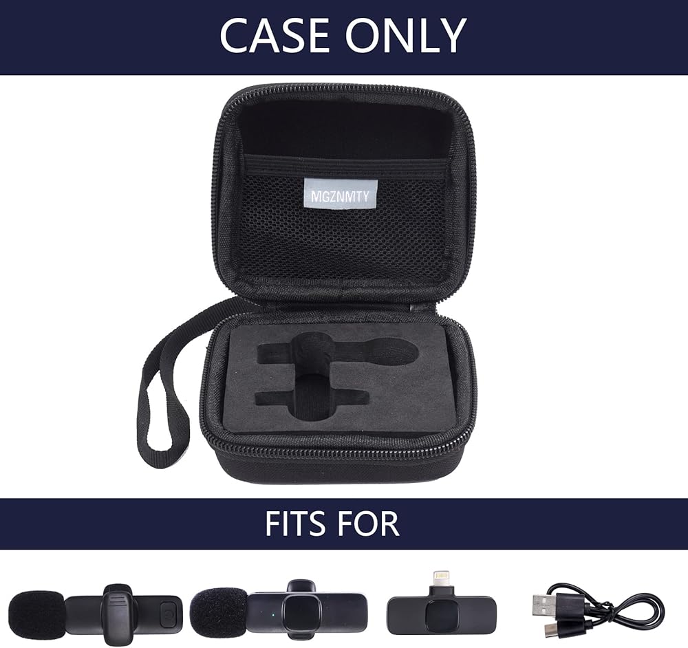 حقيبة محمولة للسفر لميكروفون MAYBESTA Lapel Wireless Lavalier لأجهزة iPhone، وتخزين جهاز استقبال وجهاز إرسال الميكروفون بمشبك تسجيل الفيديو الصغير (أسود) (حقيبة تخزين فقط)