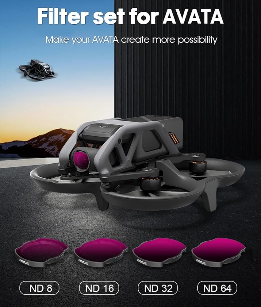 • 【نماذج قابلة للتطبيق: مجموعة فلتر الكاميرا هذه مناسبة لطائرة DJI Avata بدون طيار. تشتمل مجموعة الفلتر على 4 قطع من مرشحات ND: ND8 + ND16 + ND32 + ND64.