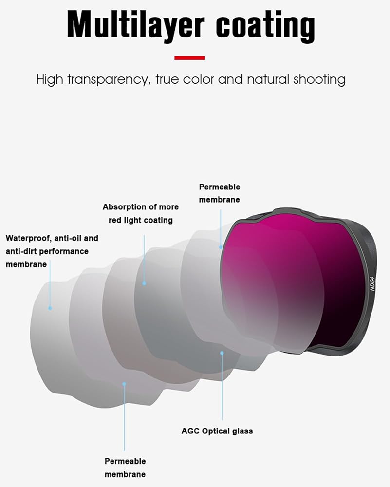 • 【فلتر كاميرا عالية الدقة】كل فلتر عدسة بدون طيار مصنوع من إطار معدني + زجاج بصري ACG لاستعادة الألوان الحقيقية.