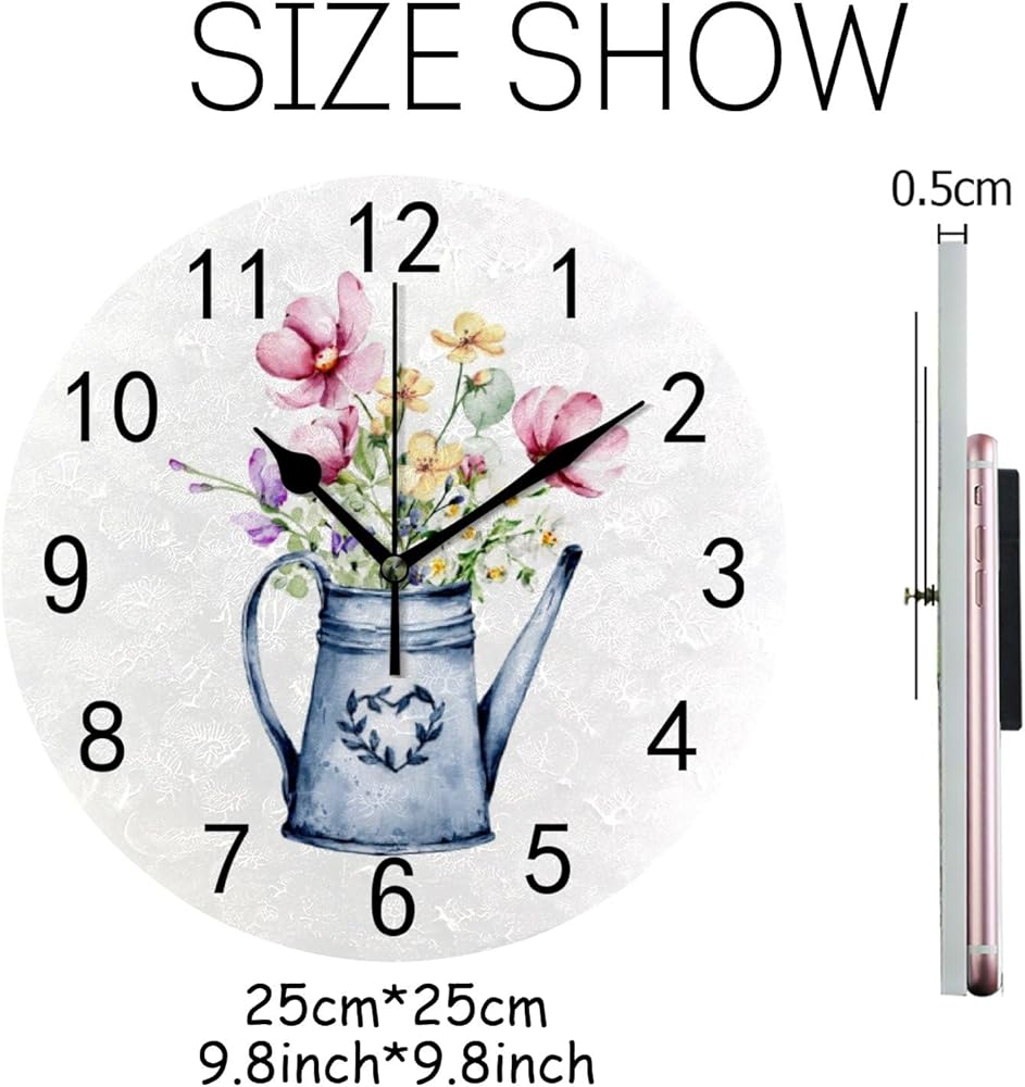 【المادة والمقاس】حجم الساعة 9.8 × 9.8 بوصة، وهو الحجم الصحيح، بسيط وسهل القراءة. سُمك 0.2 بوصة فقط، رفيع ومريح، لا تقلق بشأن السقوط.