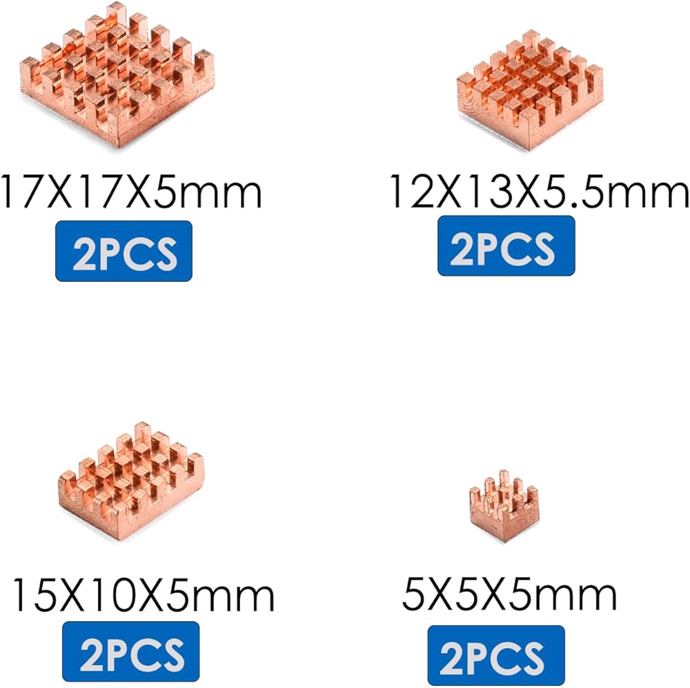 مجموعة المبدد الحراري النحاسي لـ Raspberry Pi 5، مع شريط لاصق موصل حراري 8810، المبدد الحراري النحاسي لتبريد Raspberry Pi Raspberry Pi 4 5 (8 قطع مبدد حراري نحاسي)