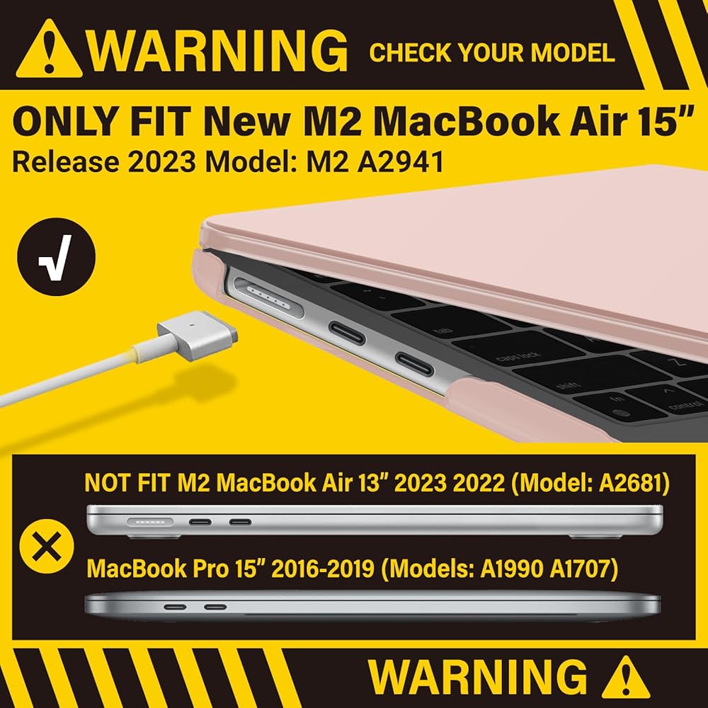 تحقق من الطراز الخاص بك: تم تصميم هذا الجراب خصيصًا لجهاز MacBook Air 2024 2023 M2 مقاس 15 بوصة مع شاشة Liquid Retina وTouch ID، أحدث طراز: A2941؛ MQKU3CH/A، MQKQ3CH/A، MQKR3CH/A، MQKT3CH/A، MQKV3CH/A، MQKW3CH/A، MQKP3CH/A، MQKX3CH/A.