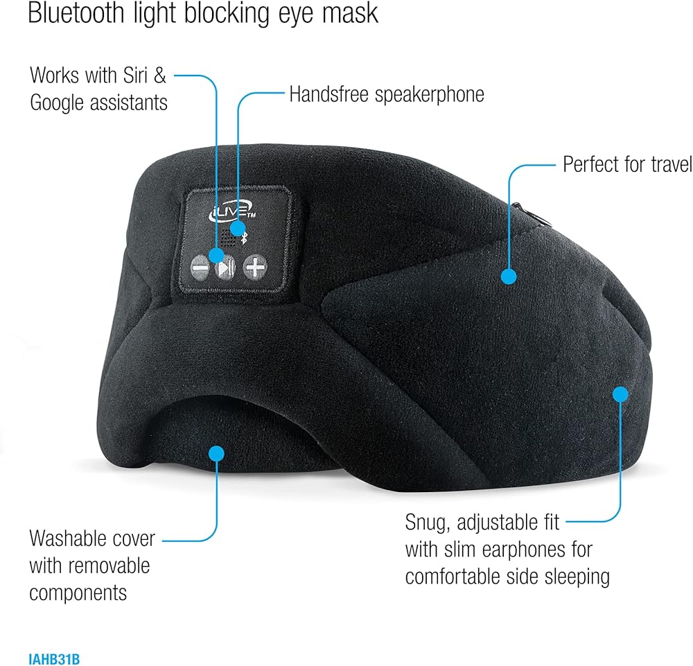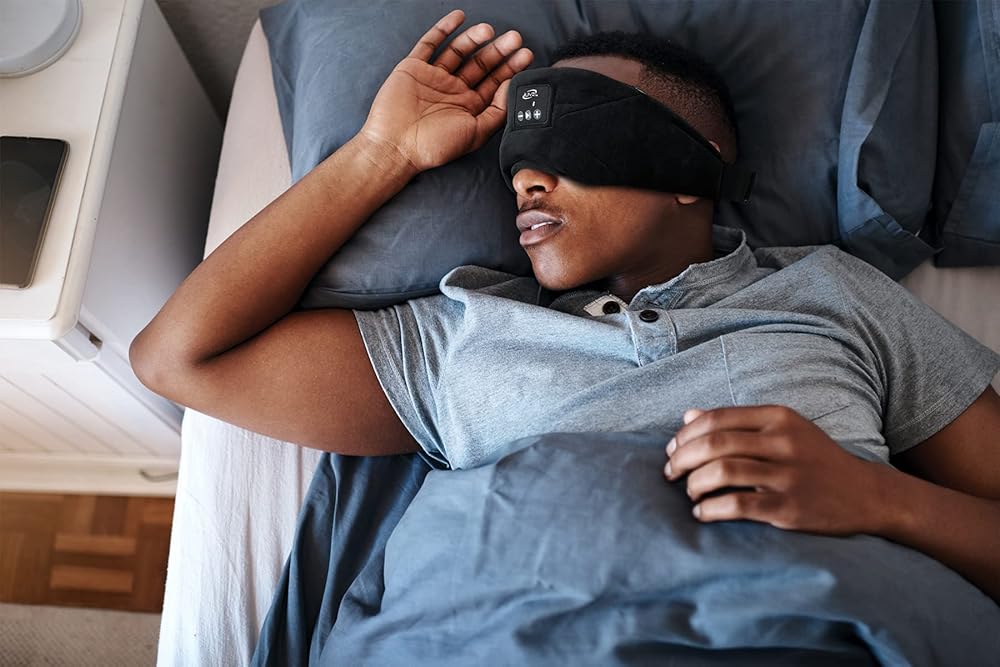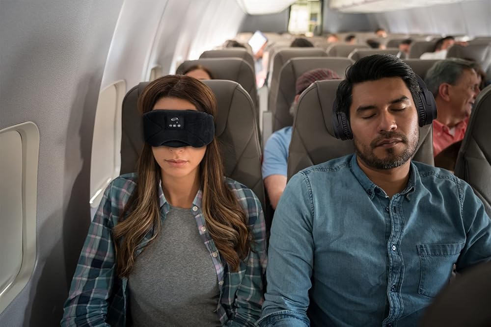 سماعات أذن رفيعة لنوم مريح على الجانب مع تصميم حاجب للضوء وعصابة رأس ناعمة ومريحة وقابلة للتعديل
