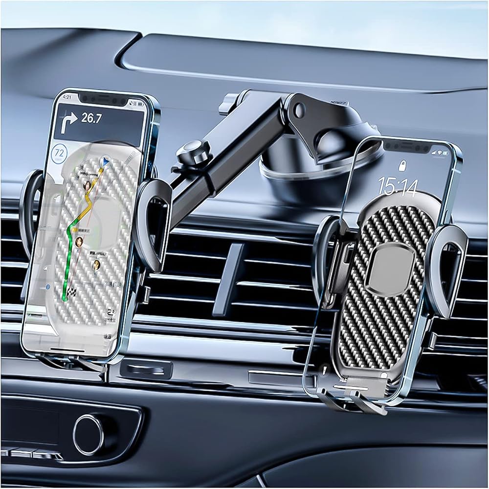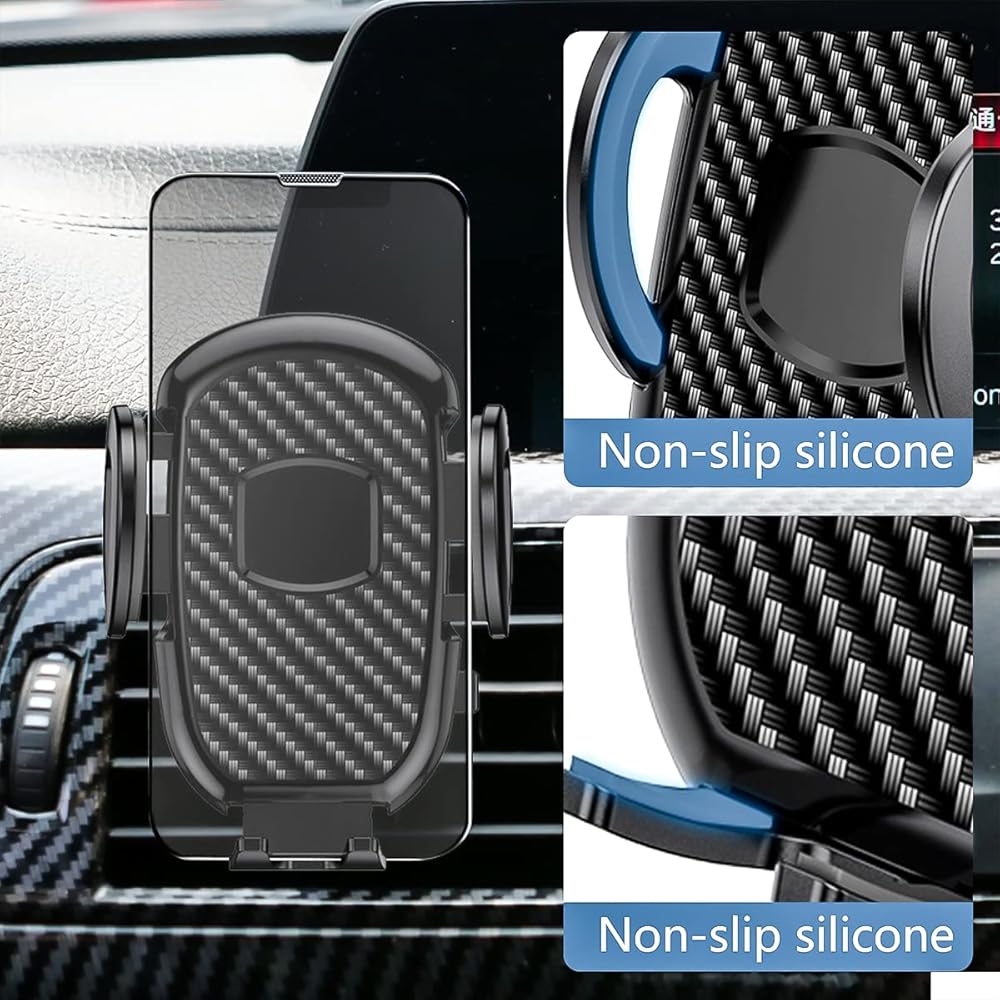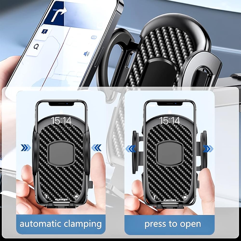 • حامل هاتف من ألياف الكربون للسيارة: بطانة مصممة من الكربون عالي الجودة. تم تصميم المنتج باستخدام المواد الأكثر أناقة والأكثر متانة، وهو قابل للغسل / إعادة الاستخدام - قم بغسل كوب الشفط الخاص بالحامل لاستعادة الالتصاق، ما عليك سوى شطفه بالماء الدافئ وتجفيفه. منفذ شحن سهل الوصول - مصمم ليمنحك وصولاً سهلاً إلى منفذ شحن هاتفك ويجعل تجربة القيادة الخاصة بك أفضل.