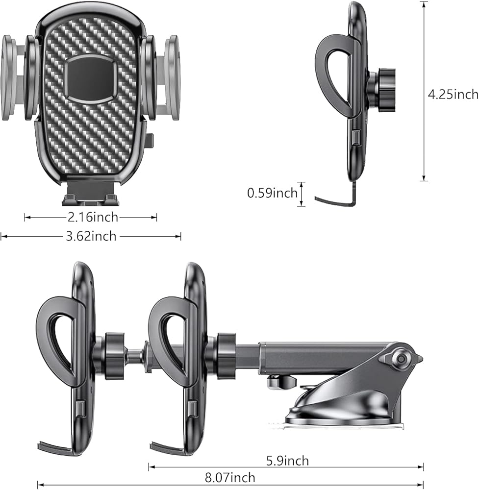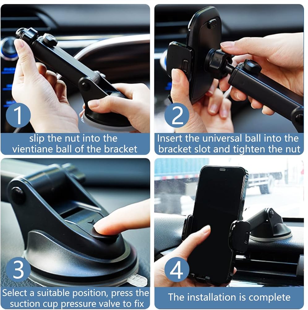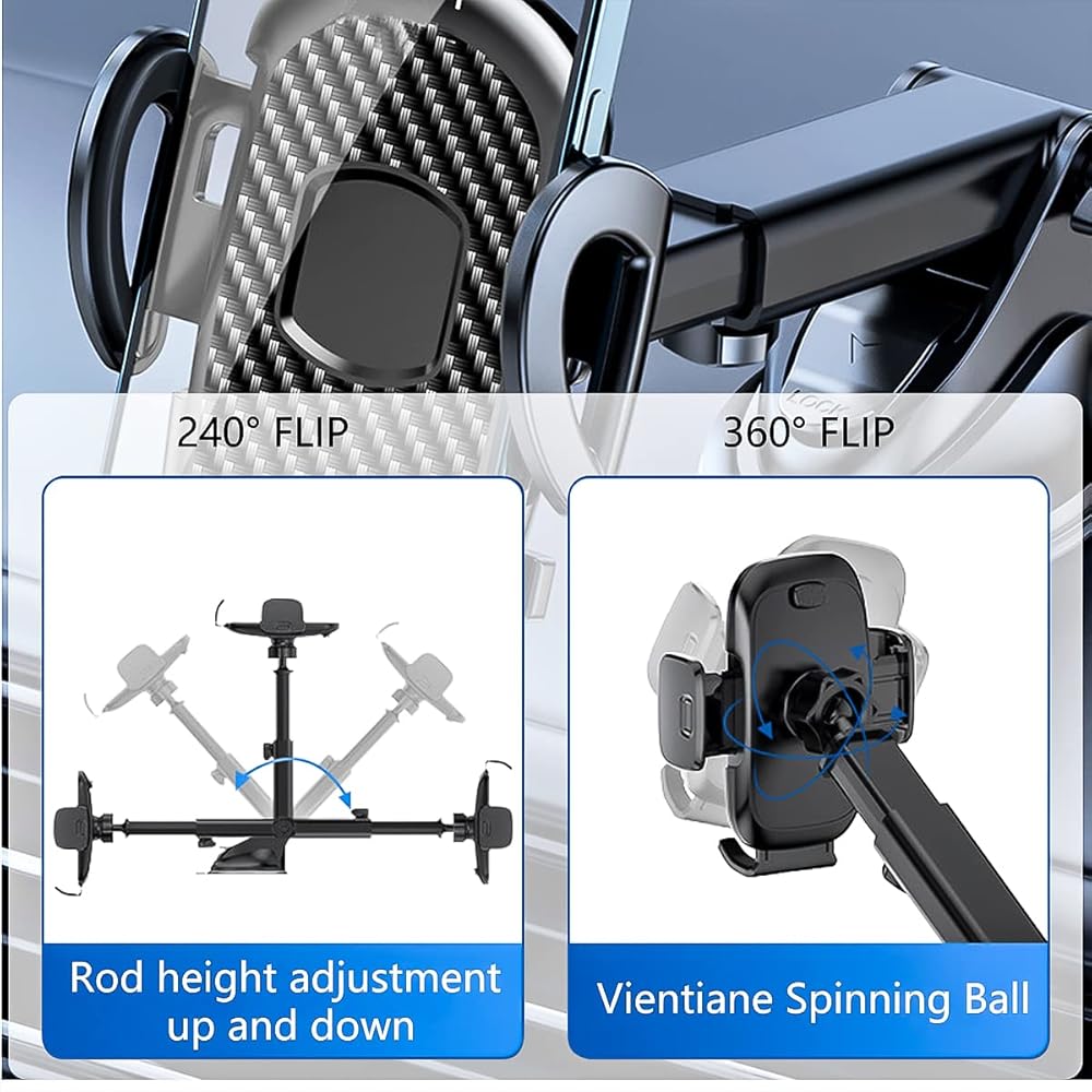 • سهل الضبط وزاوية عرض 360 درجة: يتميز حامل الهاتف الخلوي للسيارة بمفصل كروي مرن 360 درجة والذراع الطويل القابل للتعديل يجعلك قادرًا على ضبط هاتفك على أي زاوية، ويمكنه التبديل بسرعة بين الرؤية الرأسية والأفقية. يتميز حامل الهاتف الخلوي للسيارات بدون استخدام اليدين أيضًا بنظام تحرير بزر واحد، يمكنك تحرير الهاتف في غضون ثانية واحدة فقط بالضغط على الزر بيدك.