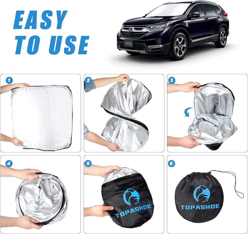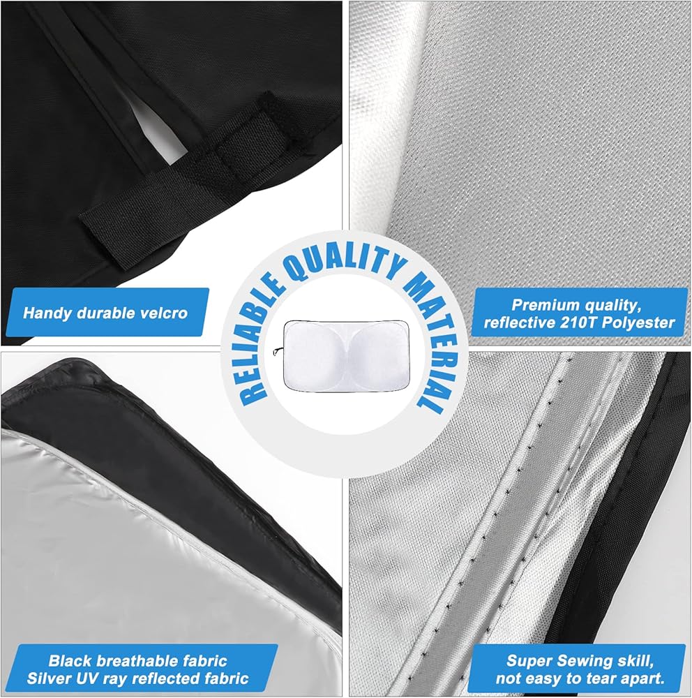 🚗 مواد عالية الجودة - مظلة الشمس الخاصة بنا مصنوعة من طلاء عالي الجودة 210T ومواد قماشية مسامية تعكس بشكل فعال الأشعة فوق البنفسجية للشمس، وتعزل نقل الحرارة، وتقلل درجة الحرارة داخل سيارتك. تضمن تقنية الخياطة الدقيقة لدينا مرونة الخيط وجودة القماش الذي يمكن طيه آلاف المرات دون تلف.