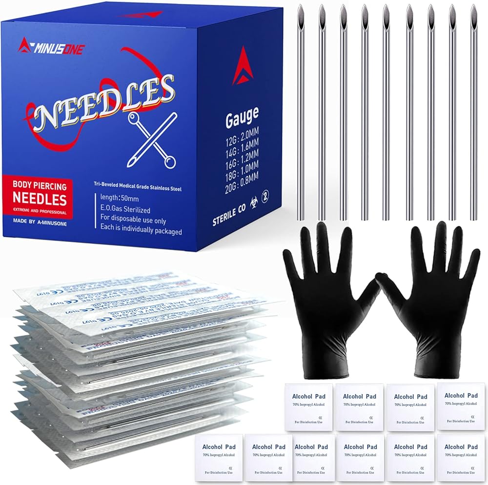 • العبوة: يحتوي كل صندوق على 25 قطعة من إبرة الثقب (5x12G، 5x14G، 5x16G، 5x18G، 5x20G)، زوج من قفازات النتريل السوداء، و10 قطع من وسادات الكحول.