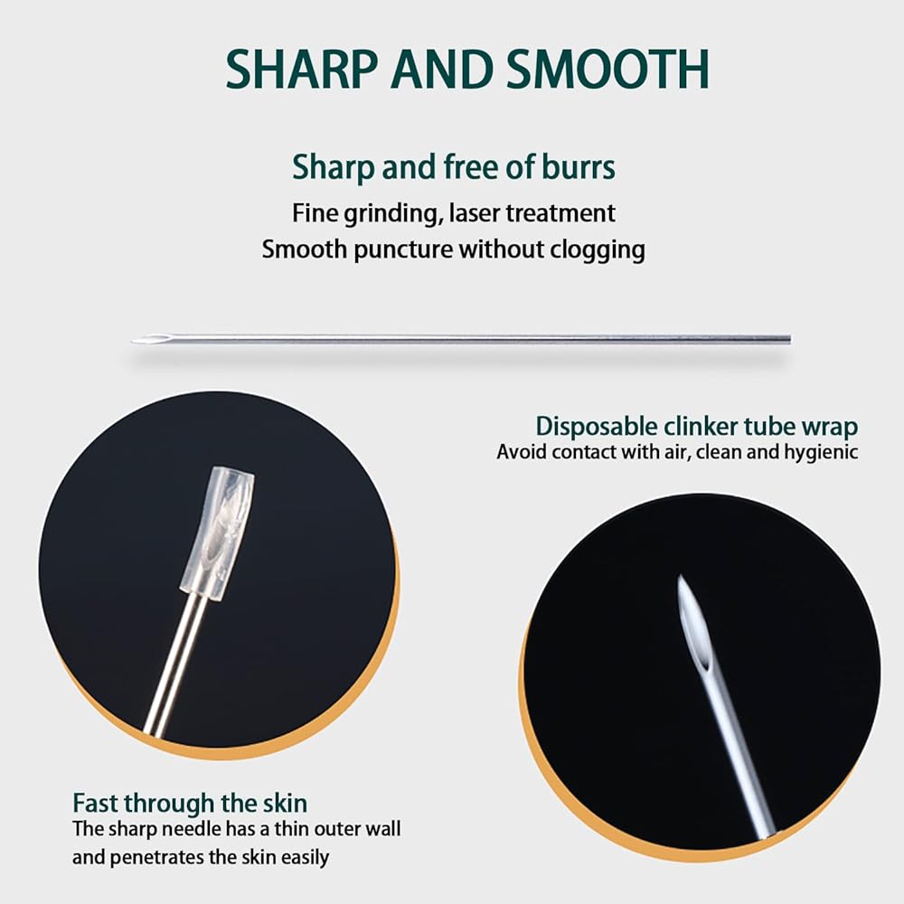 • السلامة: يتم تعبئة كل إبرة بشكل فردي وتعقيمها بنسبة 100% باستخدام E.O.. للاستخدام مرة واحدة فقط.