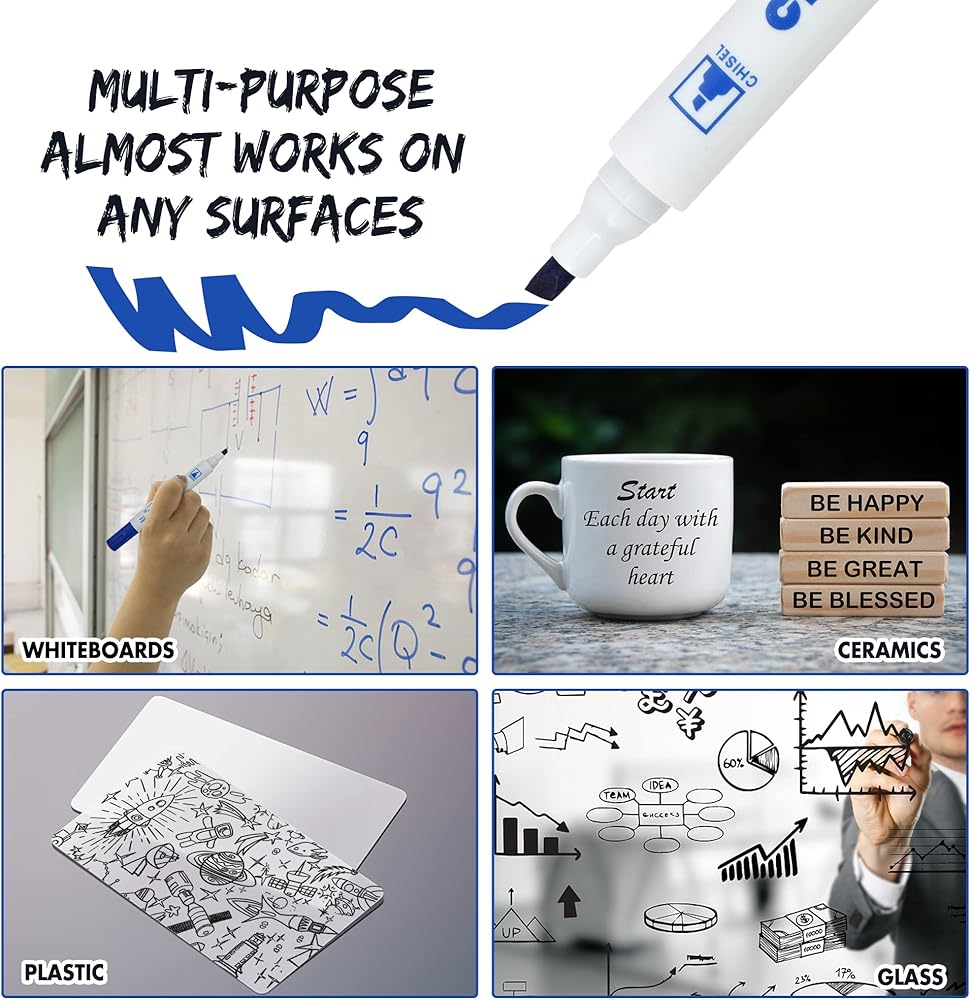 آمن للاستخدام: حبر معتمد غير سام وتركيبة خاصة منخفضة الرائحة، يعمل على معظم الأسطح الجافة الممحاة ويجف بسرعة.