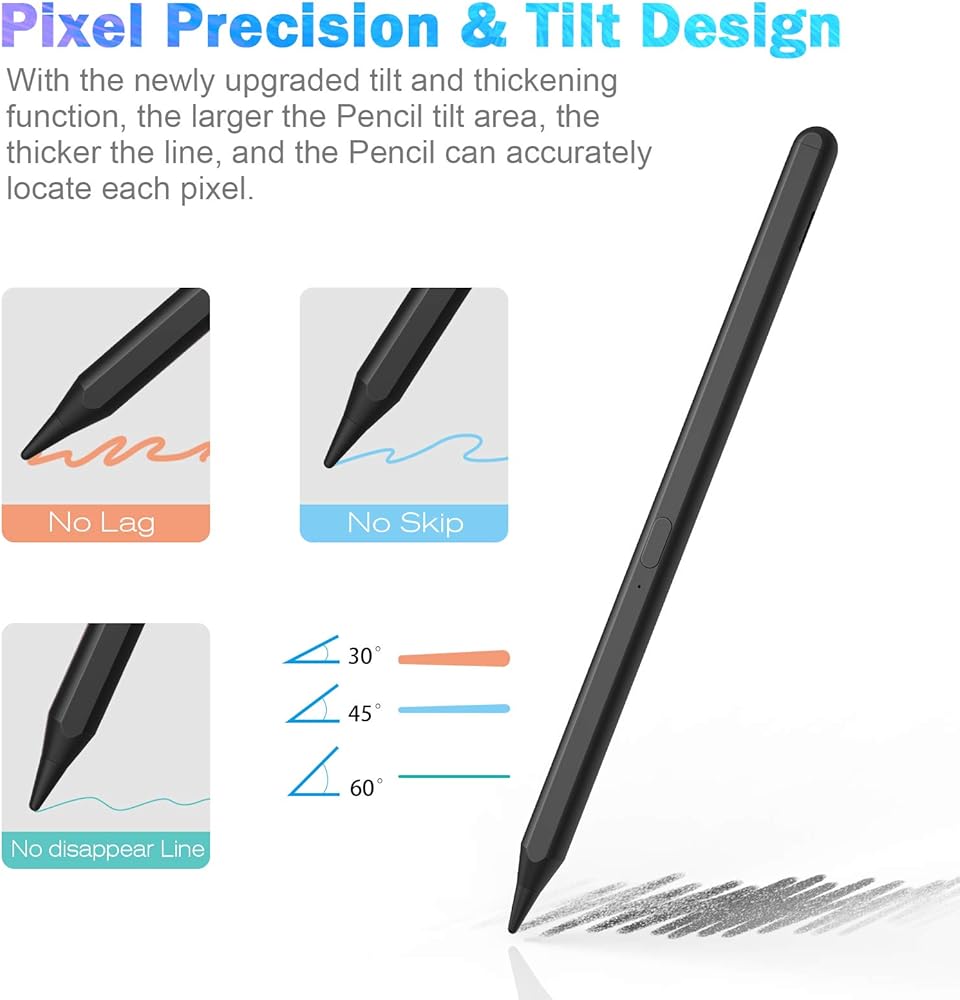 الدقة والإمالة: تم تحسين طرف POM فائق الدقة مقاس 1.5 مم لجهاز Apple iPad Pencil الجيل العاشر من iPad Pro (2018-2022) 12.9/11 بوصة للتحكم الدقيق والثابت في قلم الرصاص والذي يمكن أن يحل محل الأصابع لتنفيذ تعليمات أكثر دقة. تصميم إمالة، وظيفة إمالة وسمك مطورة جديدة، كلما كانت منطقة إمالة القلم أكبر، كلما كان الخط أكثر سمكًا. يمكنك استخدامه لتصفح الإنترنت أو تدوين الملاحظات أو الرسم لتلبية كافة احتياجات مكتبك أو دراستك.