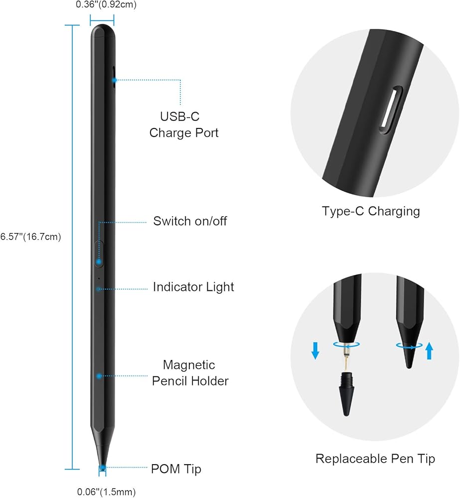 لا يوجد تأخير أو إزاحة أو نقطة كسر: لن يهتز طرف Apple iPad 10th Generation iPad Pro 6th/5th أبدًا! لديك السيطرة الكاملة على القلم. خط مثالي في كل مرة. دقيق وسلس. تبدو القبضة وكأنها قلم رصاص. قلم iPad هذا يفاجئ الجميع عندما يحصلون عليه.