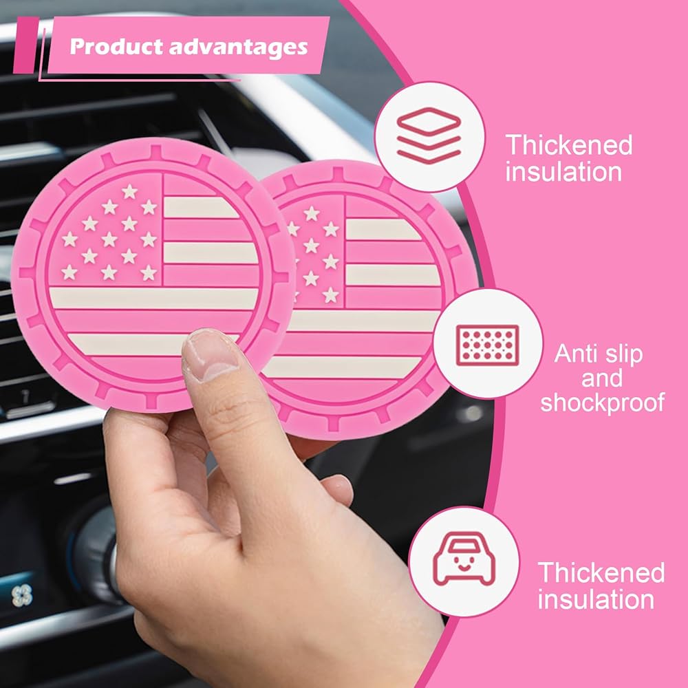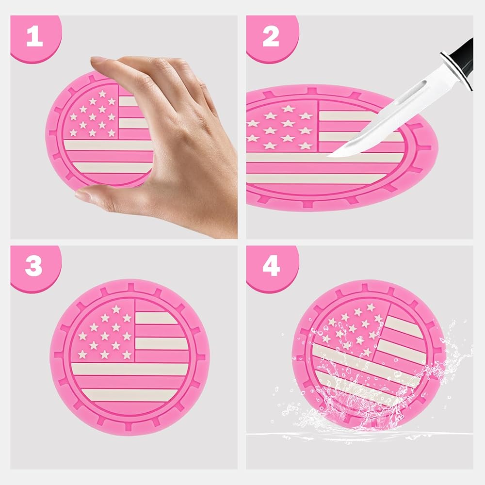 ملاءمة عالمية: تتضمن العبوة 4 × قواعد أكواب العلم الأمريكي، مقاس المنتج 2.75 بوصة. تلبي احتياجاتك في الاستخدام والاستبدال، وهي مناسبة لحامل الأكواب المستديرة في معظم السيارات، بحيث تناسب بشكل أفضل. وفي الوقت نفسه، يمكن استخدامها أيضًا كوستر للمنزل والمكتب والمقهى، وهو استخدام متعدد الوظائف ومتعدد السيناريوهات.