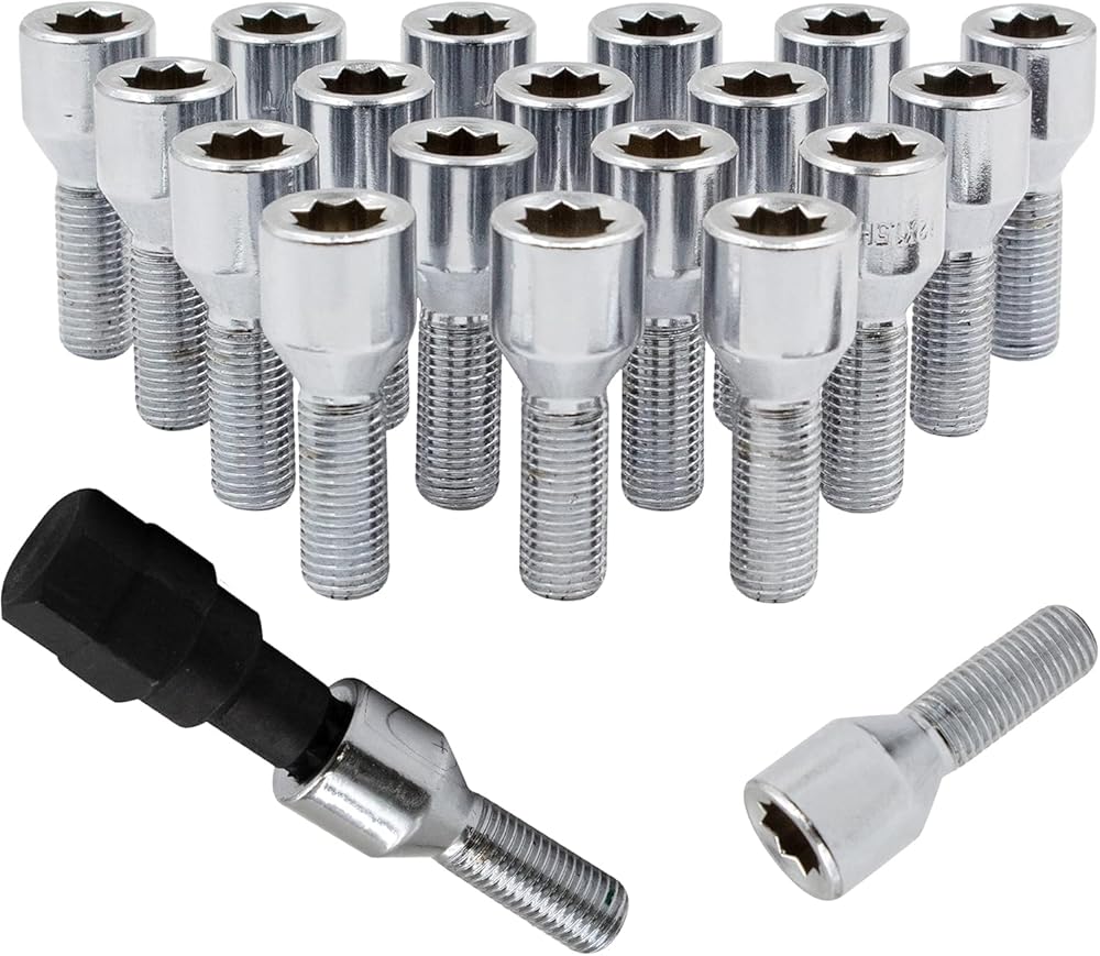مجموعة من 20 مسمارًا، مقعد مخروطي الشكل بطول 24 مم 12 × 1.5 مع مقبس 8 نقاط؛ 1 مفتاح سداسي مزدوج متضمن