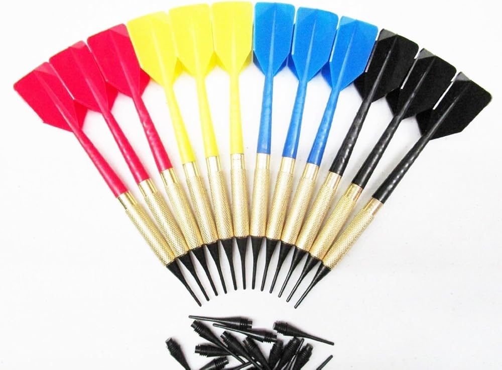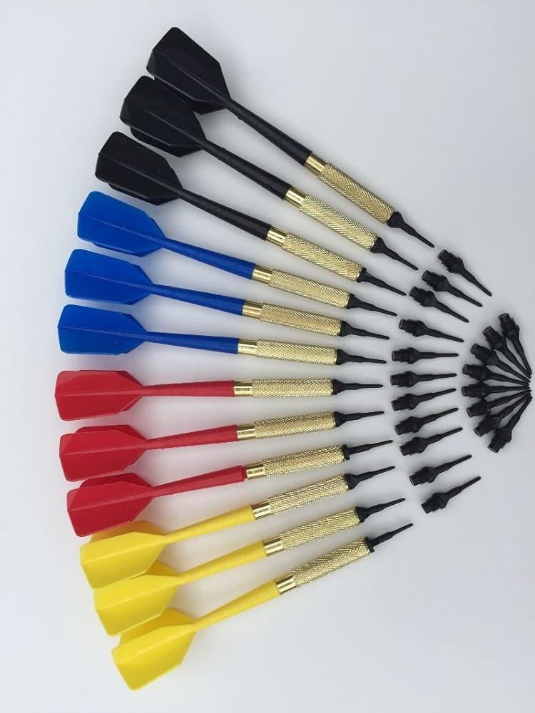 سهام ذات أطراف ناعمة تجارية من GLD - مجموعة من 12 قطعة. تتضمن أيضًا 50 رأس رمي السهام من نوع Viper Tufflex II. البراميل: نحاس. الأعمدة: قطعة واحدة من الطيران والعمود البلاستيكي المصبوب مقاس 1/4 بوصة. النصائح: 1/4 بوصة. الوزن: 13 جرام. اللون: 3 أسود، 3 أزرق، 3 أحمر، 3 أصفر.