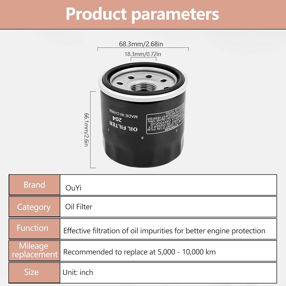 • تلبية جودة صانع المعدات الأصلية: جميع منتجاتنا تأتي من مصانع احترافية، وتلتزم شركة OuYi بتزويد العملاء بإكسسوارات عالية الجودة. إذا كانت لديك أي أسئلة، فلا تتردد في الاتصال بنا. ما تحصل عليه: تتضمن العبوة قطعة واحدة من فلتر الهواء وقطعة واحدة من فلتر الزيت.