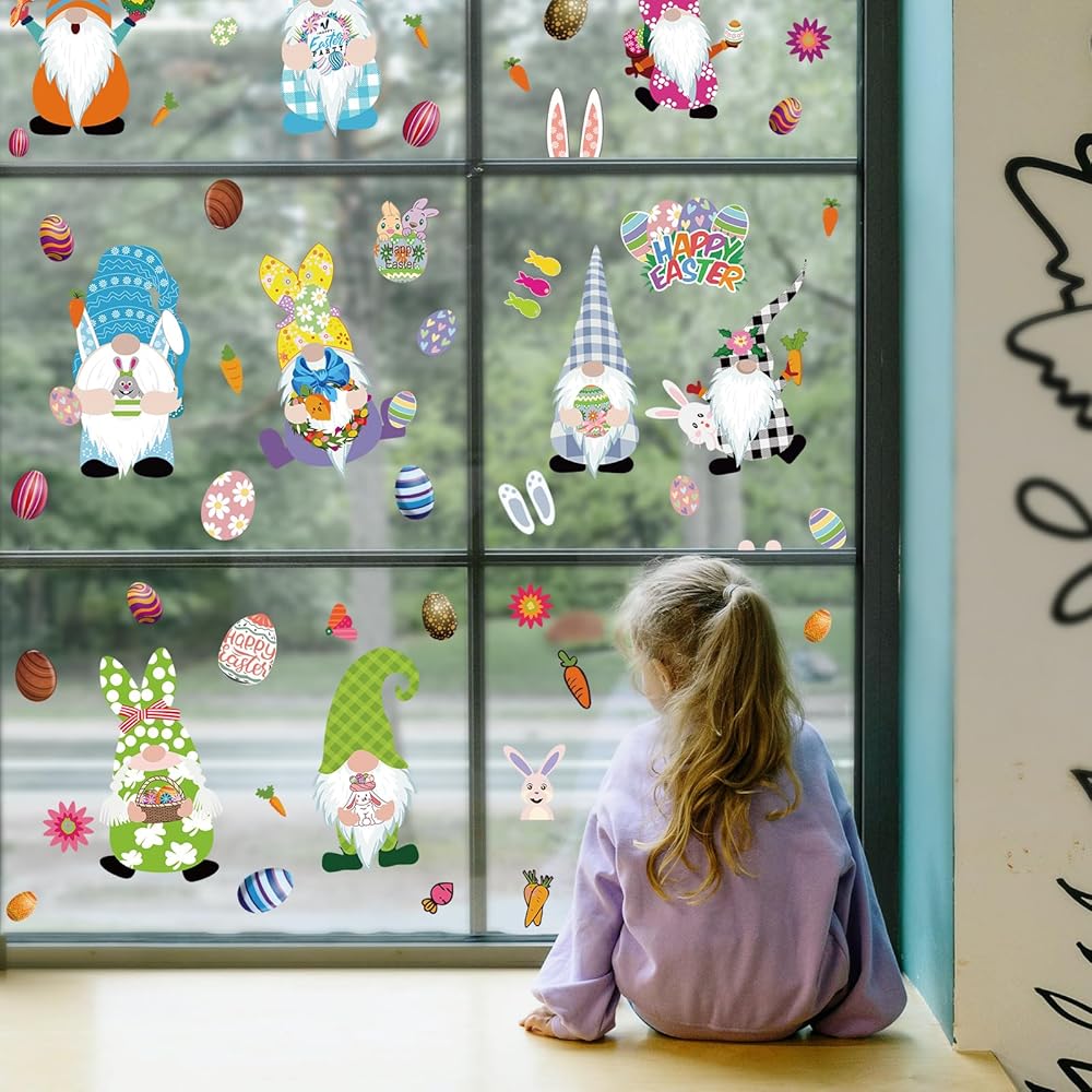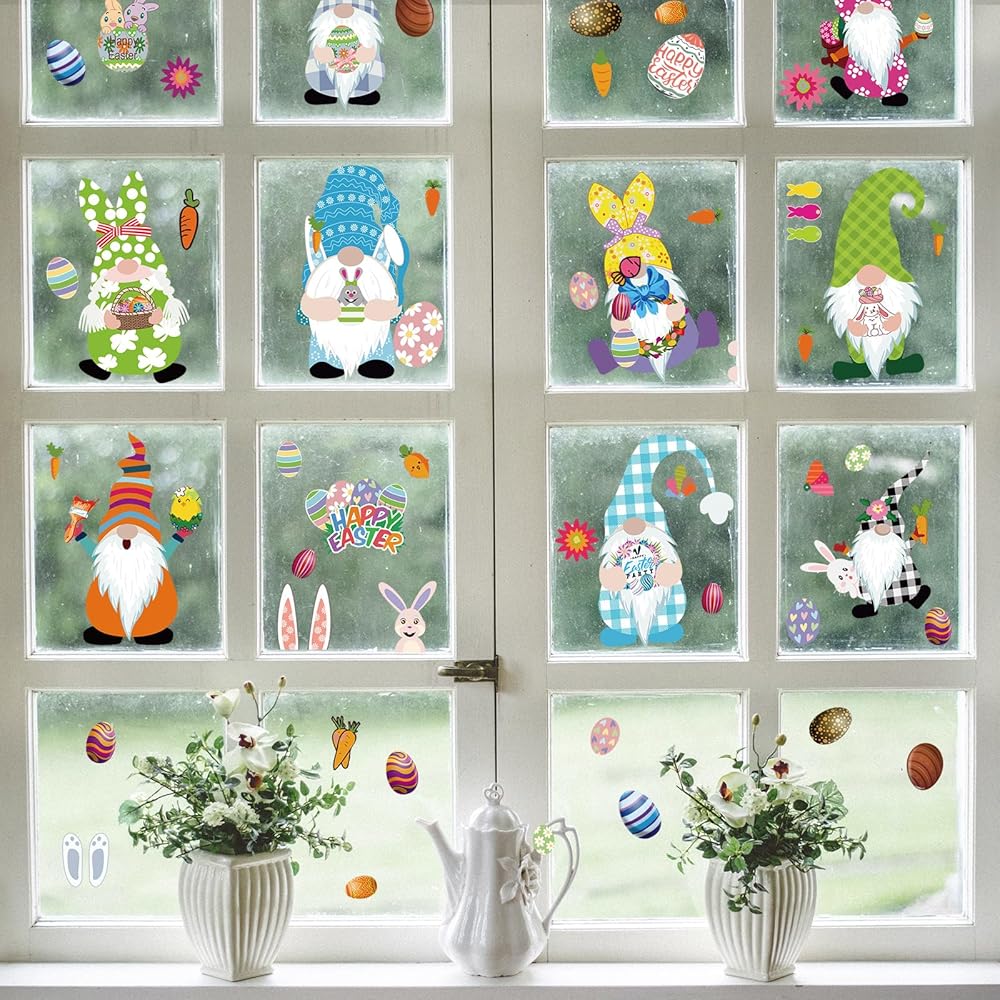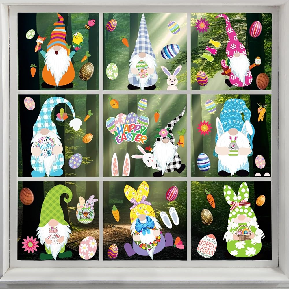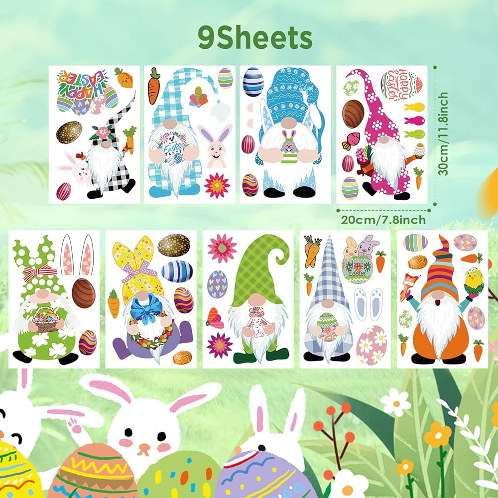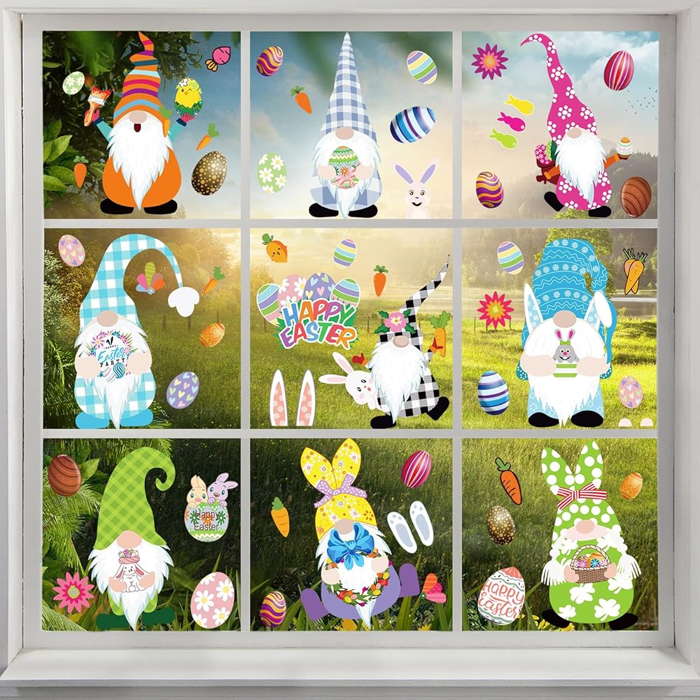 ملصقات نافذة جنوم عيد الفصح، ملصقات نافذة على شكل أرنب عيد الفصح الملون على شكل بيض، 9 أوراق عيد الفصح ملصق ثابت للمدرسة والمنزل والمكتب وإكسسوارات حفلات عيد الفصح وحفلات المنزل