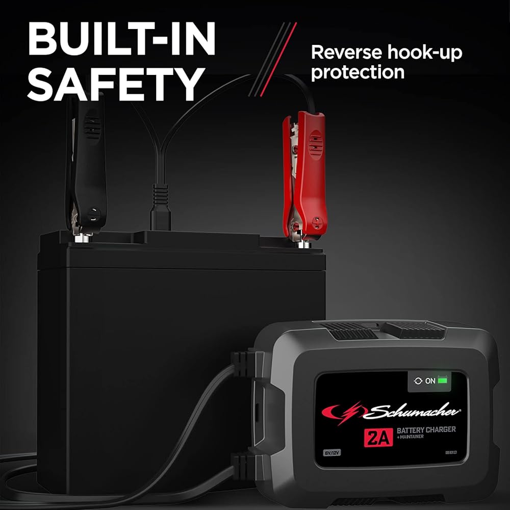 الحفاظ على البطاريات المخزنة - يمكن لصيانة بطارية السيارة Schumacher SC1586 1A الاحتفاظ بالبطاريات المخزنة أو المستخدمة بشكل غير متكرر مشحونة بالكامل وفي أفضل حالة.