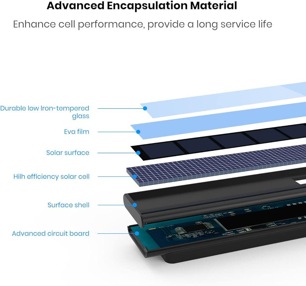 يتم استخدام الألواح الشمسية لإطالة عمر البطارية. في فصل الشتاء، لا تزال بحاجة إلى شحن البطارية باستخدام قابس USB بانتظام.