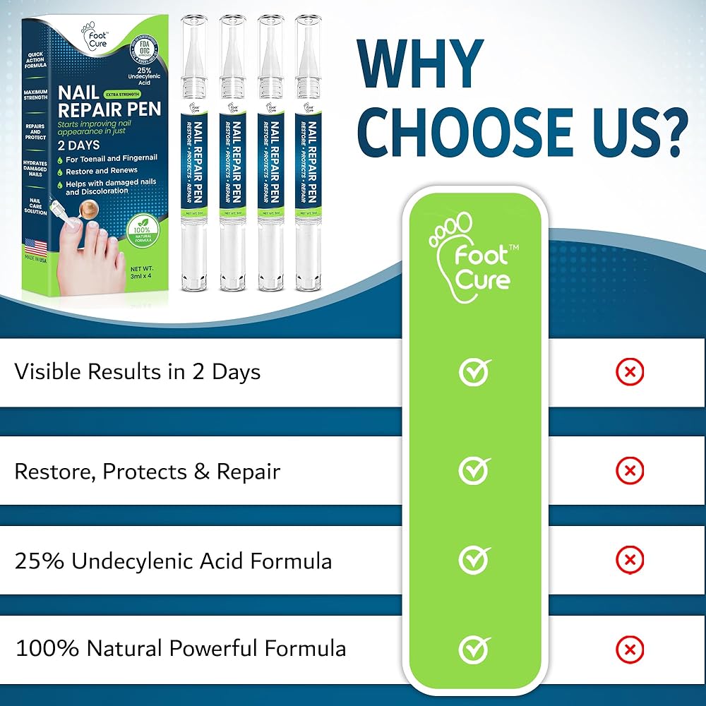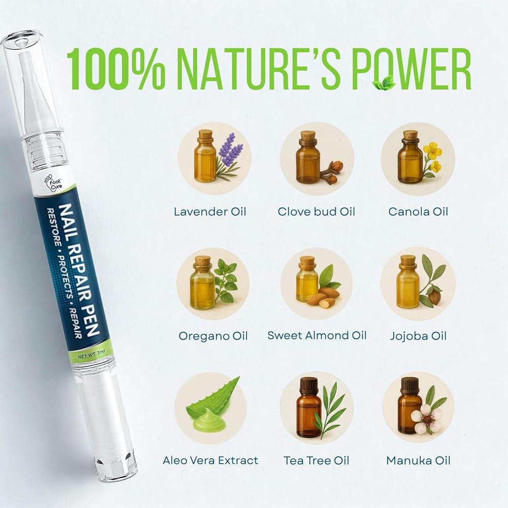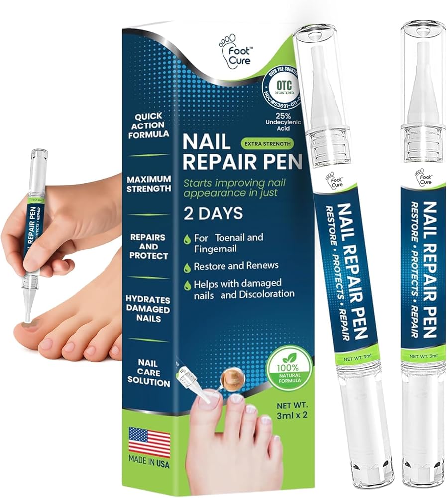 1 - On the one hand, the essential oil infused formula of the nail repair pens will take care of your foot issues, restore damaged and discolored nails, and strengthen cuticles.