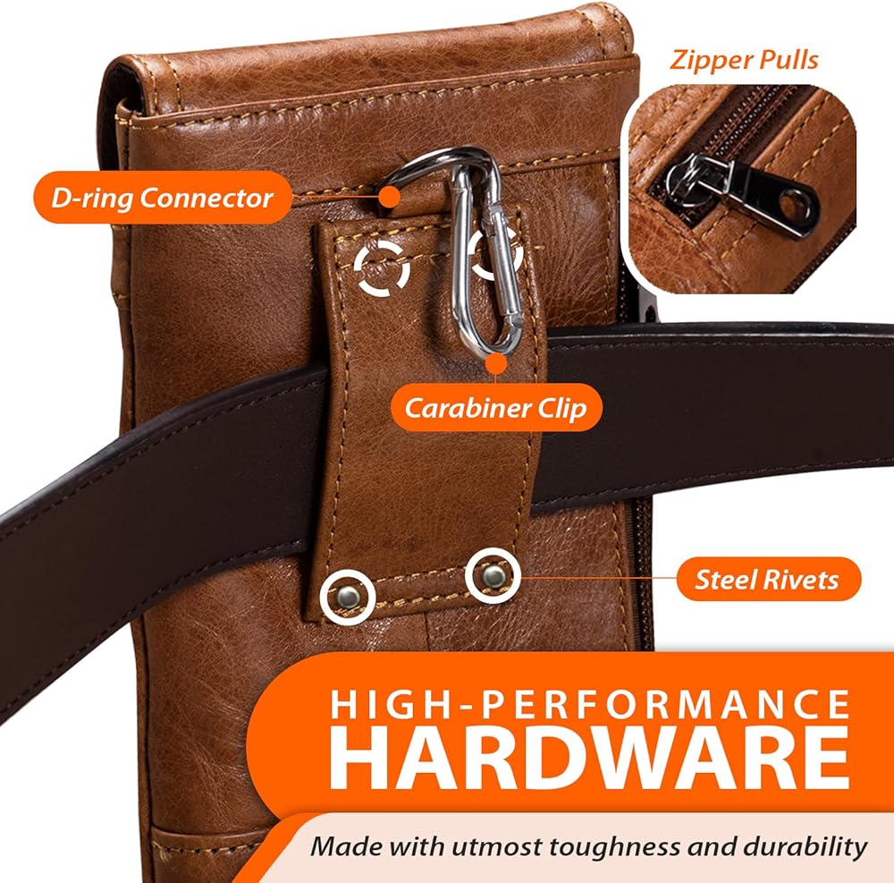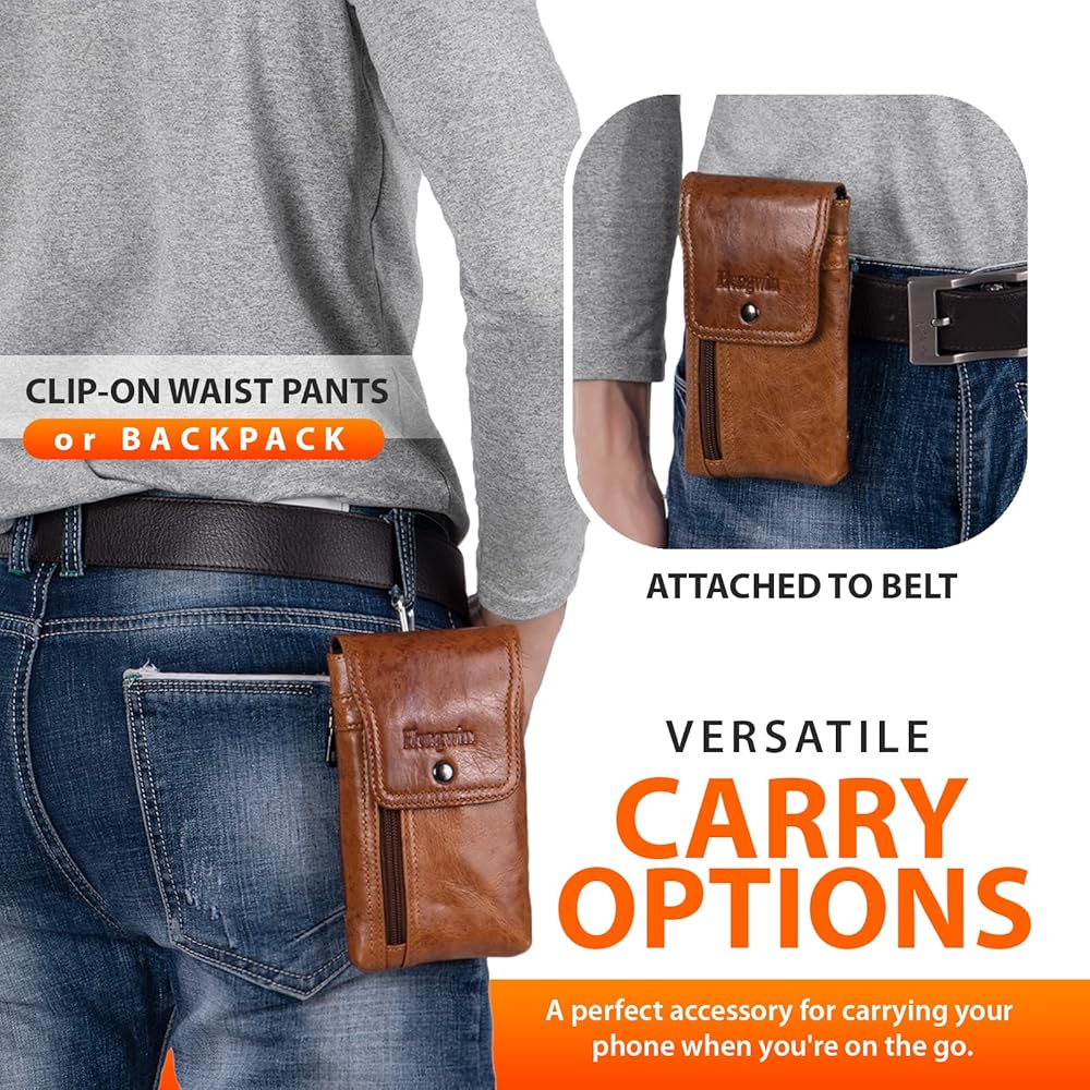 ثلاث طرق للحمل: حقيبة حزام الهاتف هذه هي الإكسسوار المثالي لحمل هاتفك أثناء التنقل. تتضمن ثلاث طرق لحمل الحافظة، حتى تتمكن من تعديلها لتناسب احتياجاتك. يحتوي الجراب على حزام بحلقة مقاس 2.3 بوصة يتم ربطه بخصرك، أو يمكنك تعليقه في حقيبة ظهرك كلما احتجت إليه.