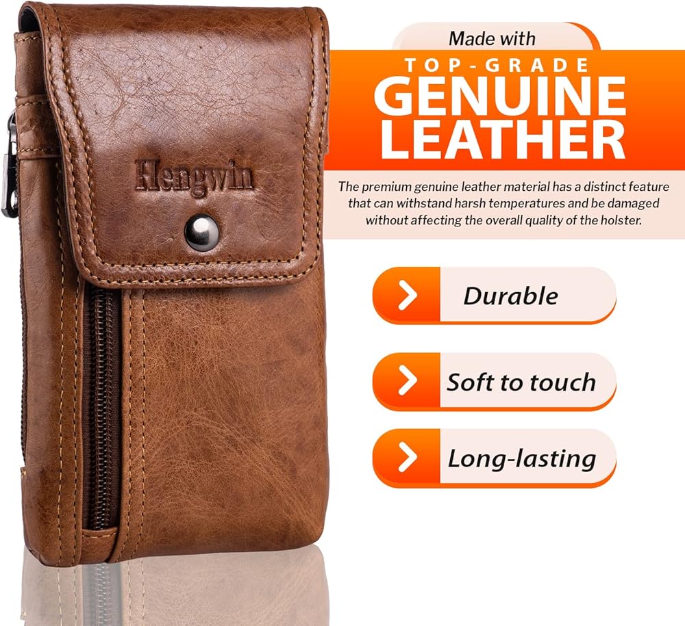 المادة: حافظة الهاتف الخلوي مصنوعة من مادة جلدية أصلية فاخرة وبطانة بوليستر ناعمة ومريحة تحافظ على جهازك الثمين بالداخل.