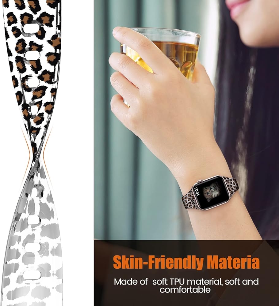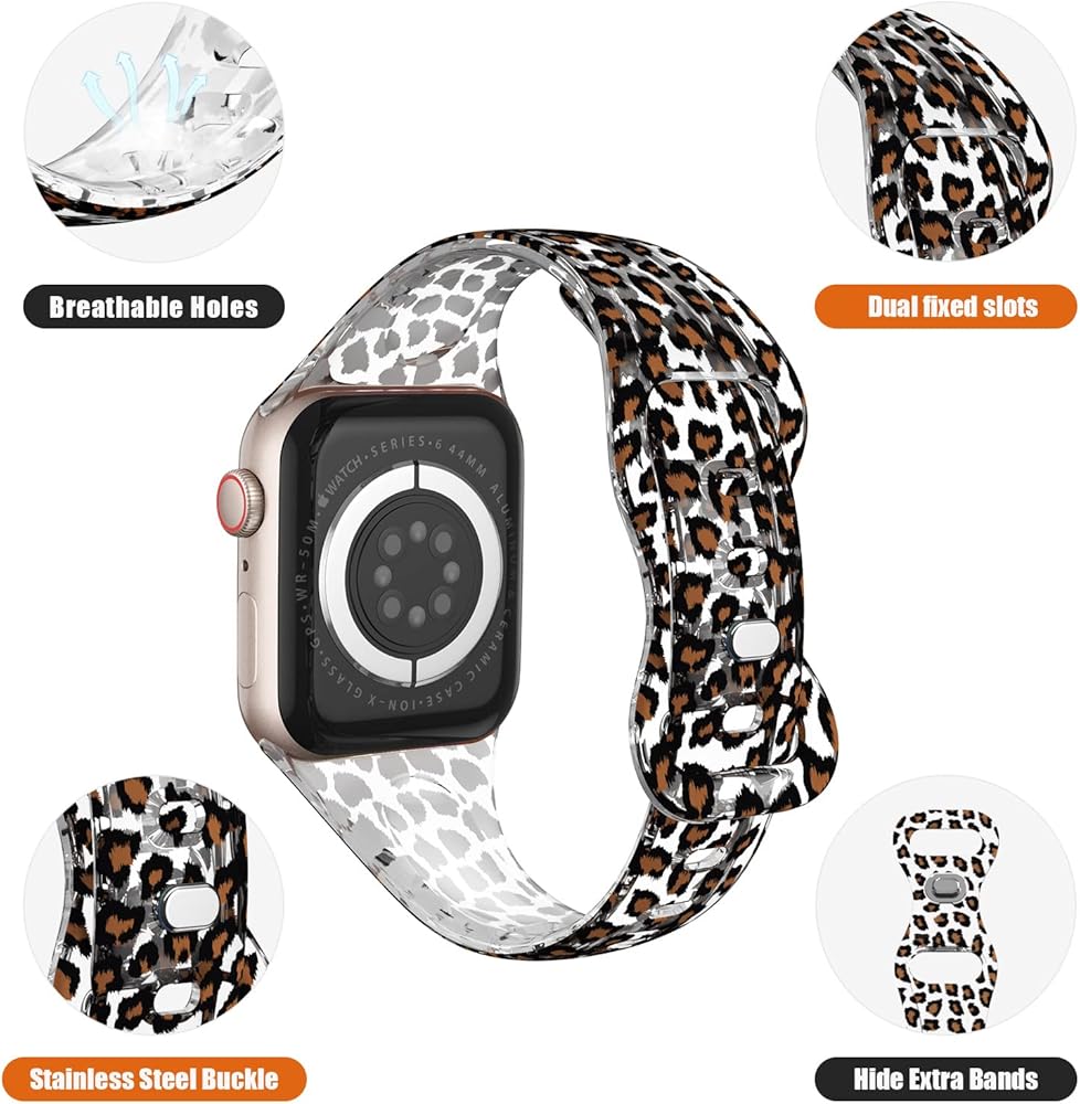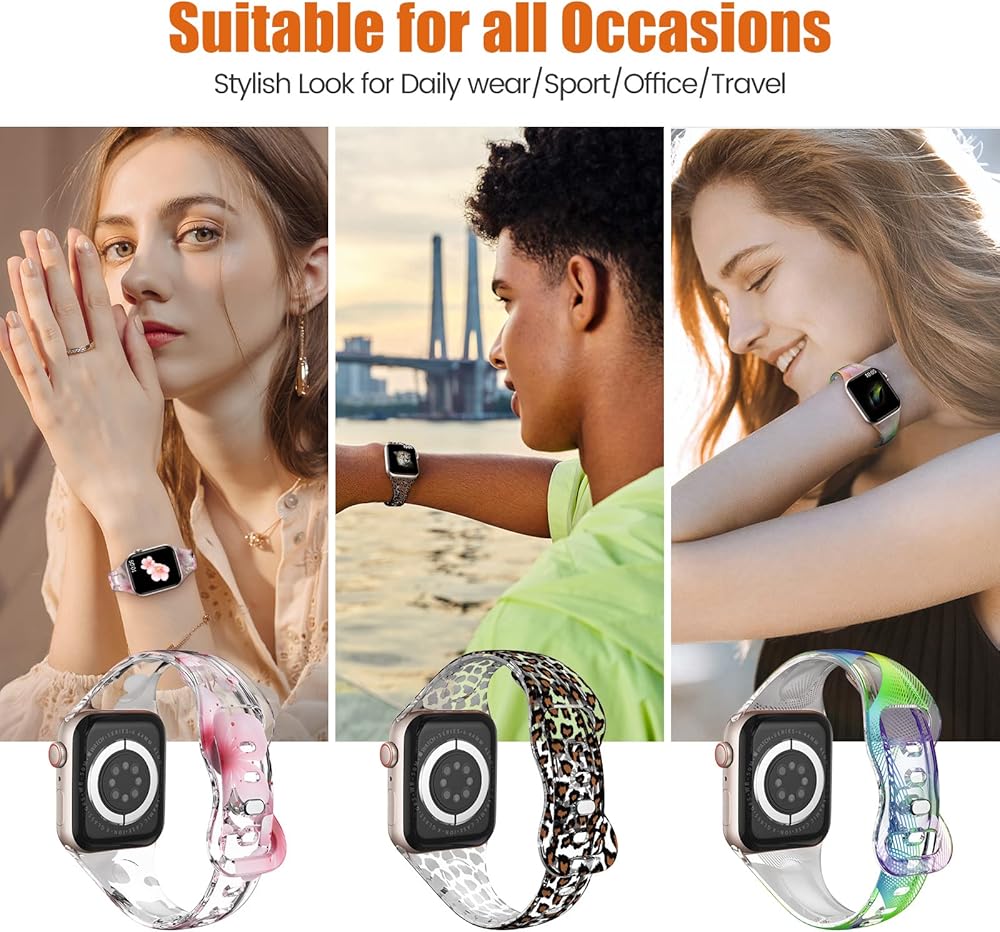 【أساور رياضية مطبوعة لطيفة】أساور iWatch الشفافة لعيد الميلاد من ABELTA مصنوعة من مادة TPU الشفافة الناعمة الممتازة وإبزيم من الفولاذ المقاوم للصدأ. سوار ساعة شفاف متين بتصميم طباعة عصري، مسامي، خفيف الوزن، مريح في الارتداء، مناسب للنساء والرجال والمراهقين. مادة مقاومة للماء وناعمة، مريحة تمامًا للارتداء أثناء ممارسة الرياضة والارتداء اليومي أو الأنشطة الخارجية.