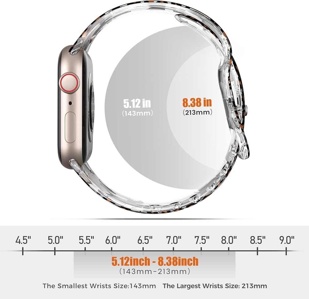 【ملاءمة مثالية】 سوار ساعة أبل الشفاف لعيد الميلاد من ABELTA متوافق مع ساعة Apple 41 مم (سلسلة iWatch 8 7)، 40 مم (سلسلة iWatch SE 6 5 4)، 38 مم (سلسلة iWatch 3 2 1). مناسب لمقاس المعصم من 5.7 بوصة - 7.5 بوصة (143 ملم - 190 ملم) لارتداء مريح. ملاحظة: يرجى اختيار المقاس المناسب لساعتك.