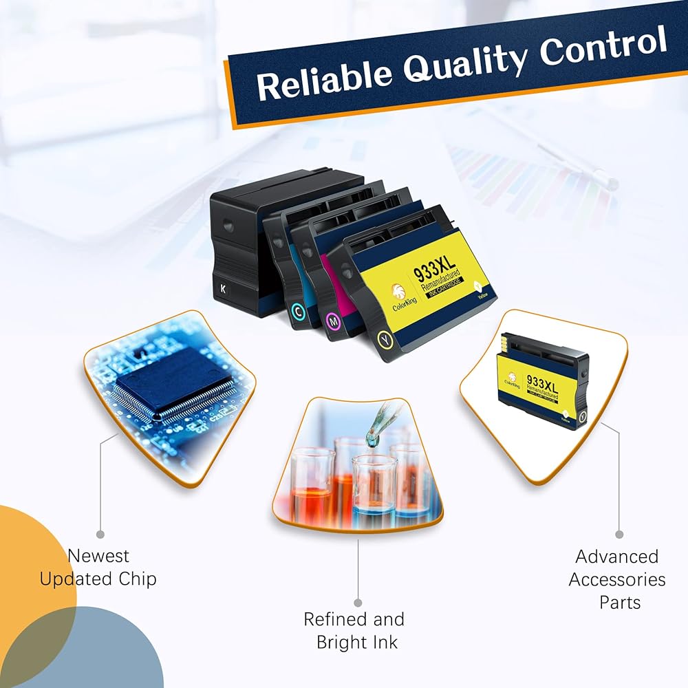 تستخدم مجموعة خراطيش الحبر ColorKing 932XL 933XL أحدث شريحة لضمان التوافق بنسبة 100% مع طابعتك، والتي يمكن التعرف عليها بسرعة بعد التثبيت