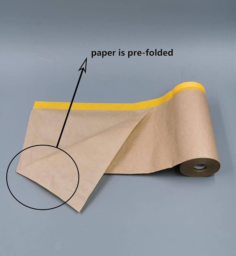 ورق لاصق وشريط لاصق للرسام في لفة ورق كرافت واحدة 8 عبوات مقاس 12 بوصة × 65 قدمًا (كل لفة) إجمالي 520 قدمًا الورق مطوي مسبقًا