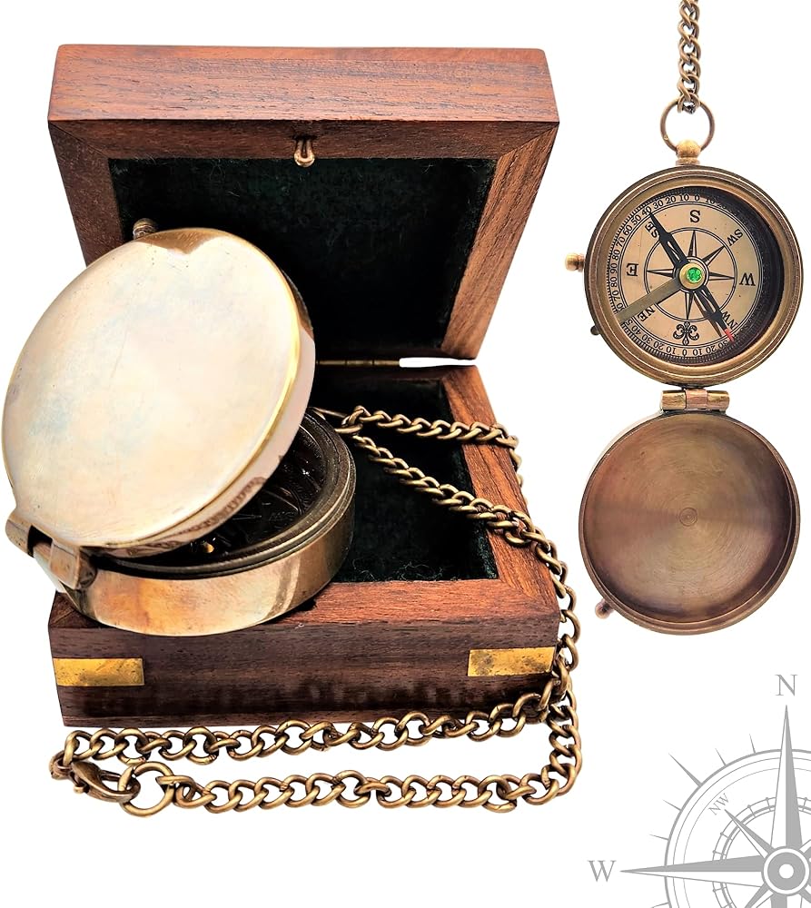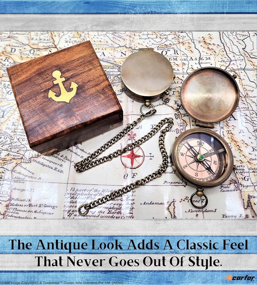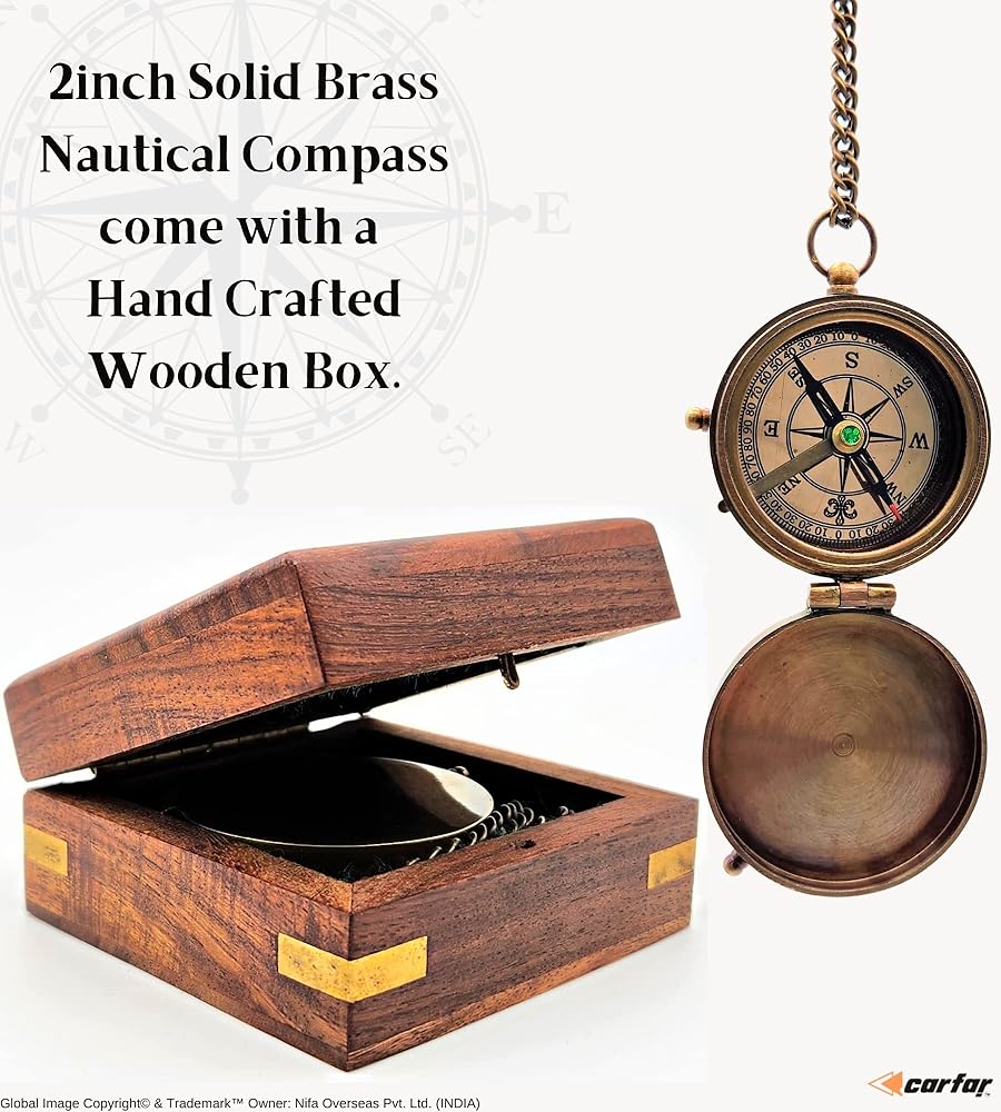 - 🧭 البوصلة البحرية العتيقة مصنوعة من النحاس عالي الجودة وتأتي مع علبة هدايا خشبية مصنوعة يدويًا.