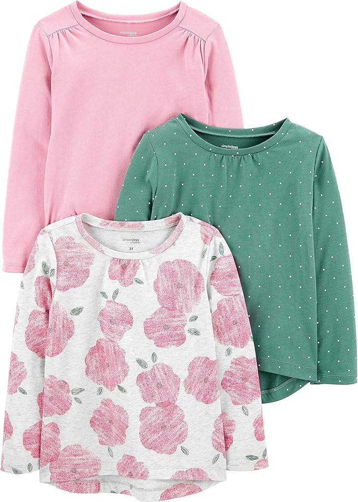 قمصان Simple Joys من Carter's للفتيات بأكمام طويلة، عبوة من 3 قطع