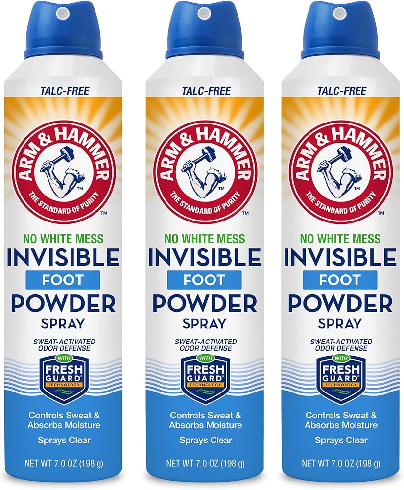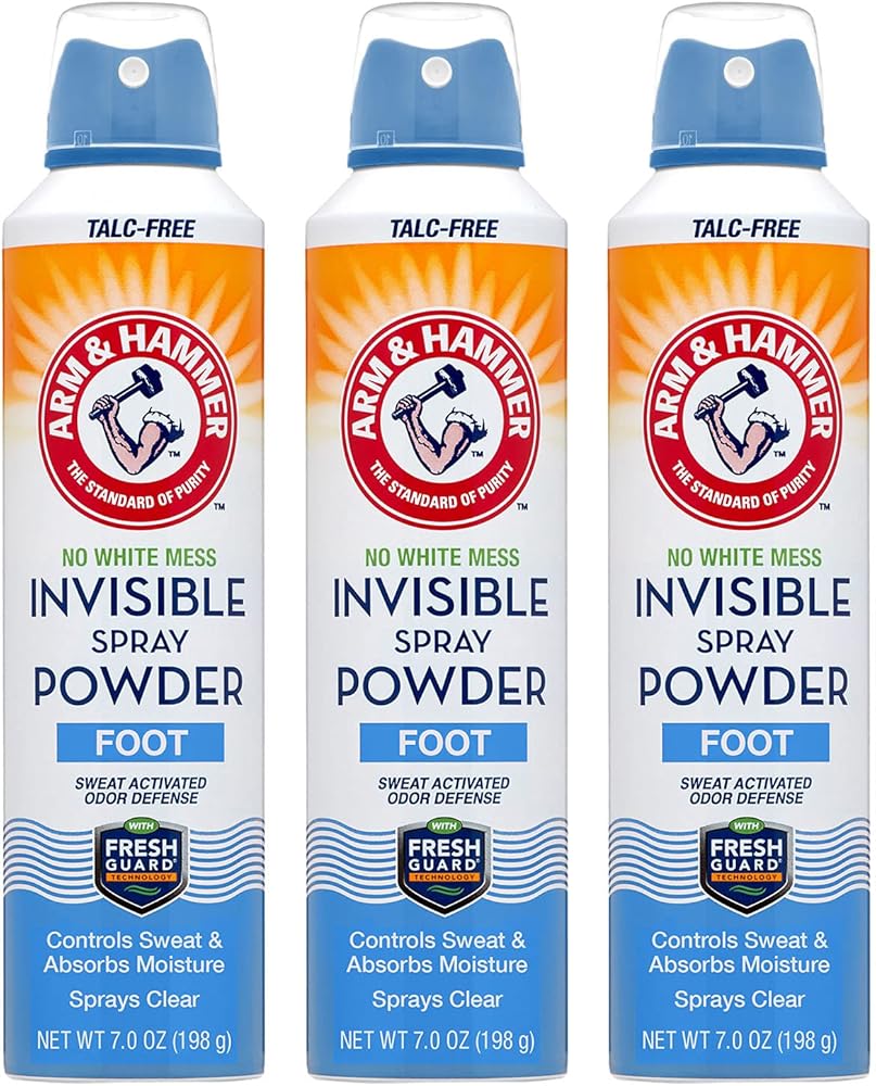 بخاخ مسحوق القدم غير المرئي من آرم آند هامر، خالٍ من التلك الشفاف للتحكم في رائحة القدم والعرق، بخاخ مزيل لرائحة القدم، مزيل رائحة القدم للرجال والنساء، بخاخ لرائحة القدم، 7 أونصة (3 عبوات)