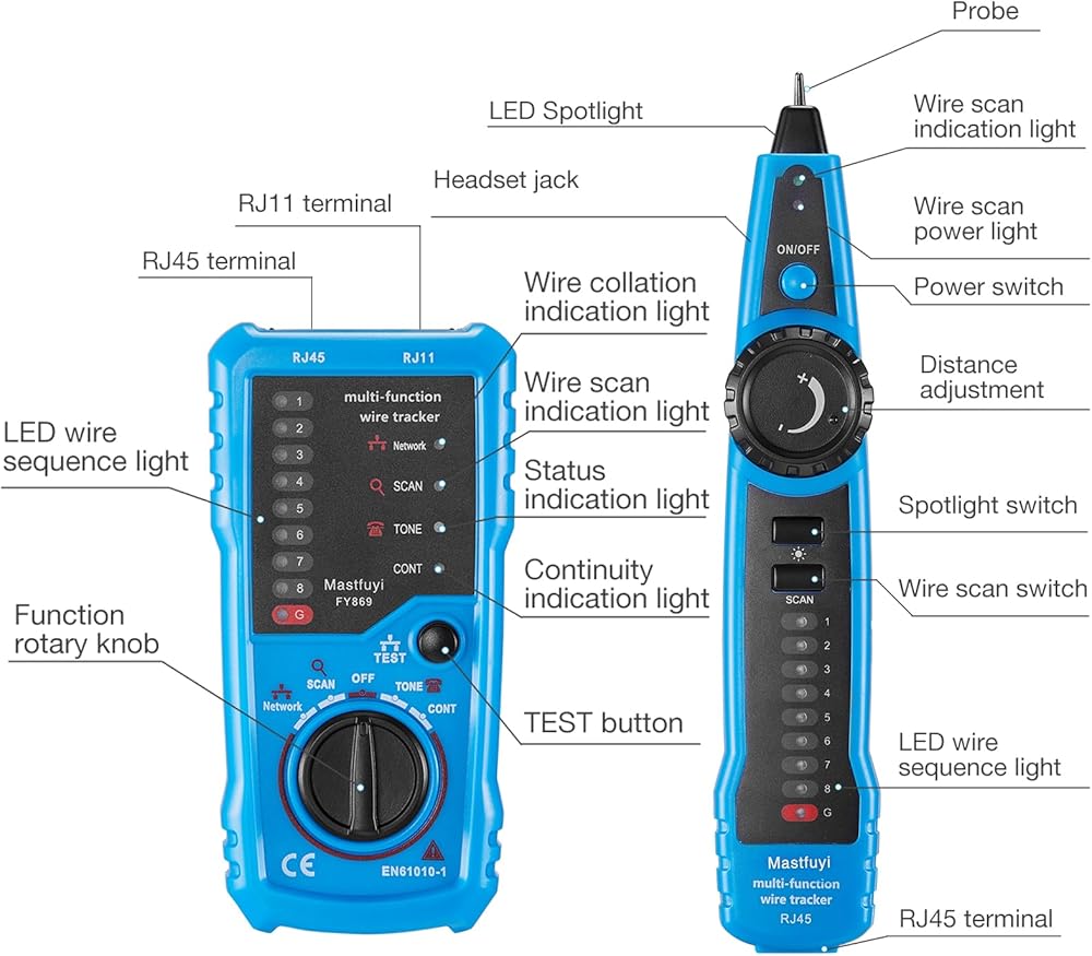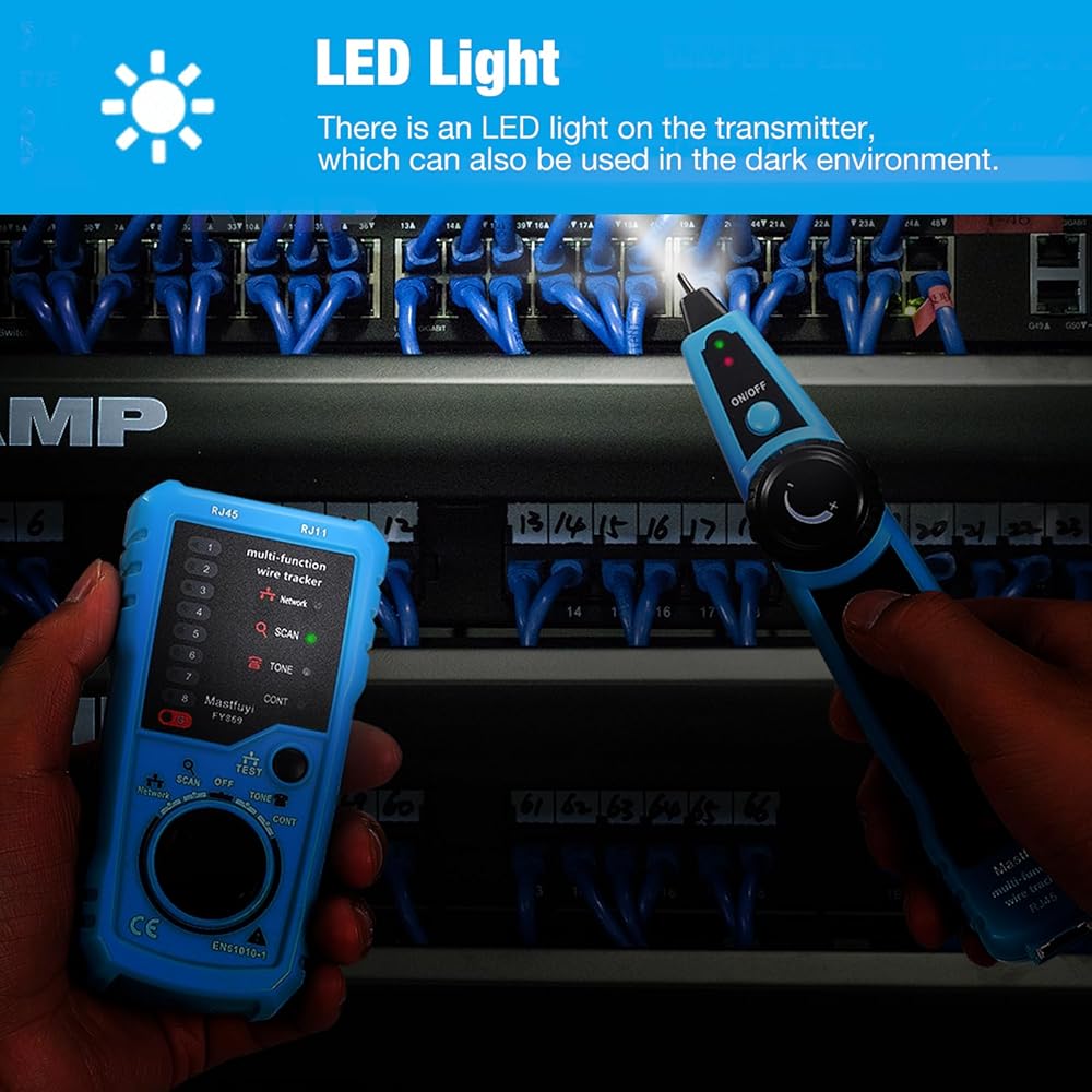 ▲[تتبع كابل RJ45 RJ11]: يمكن العثور على كابلات RJ11 وRJ45 من خلال جهاز الإرسال. من السهل والسريع العثور على الخط دون تجريد الغلاف الخارجي للكابل