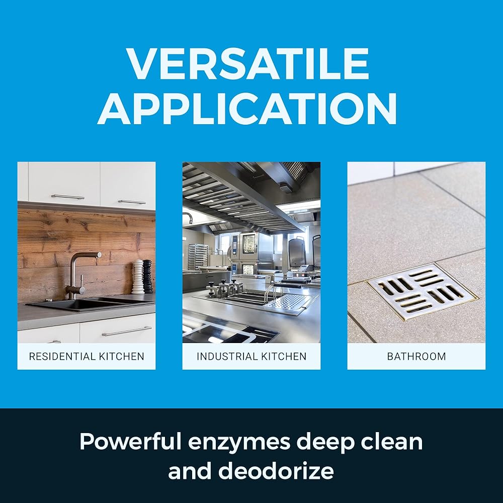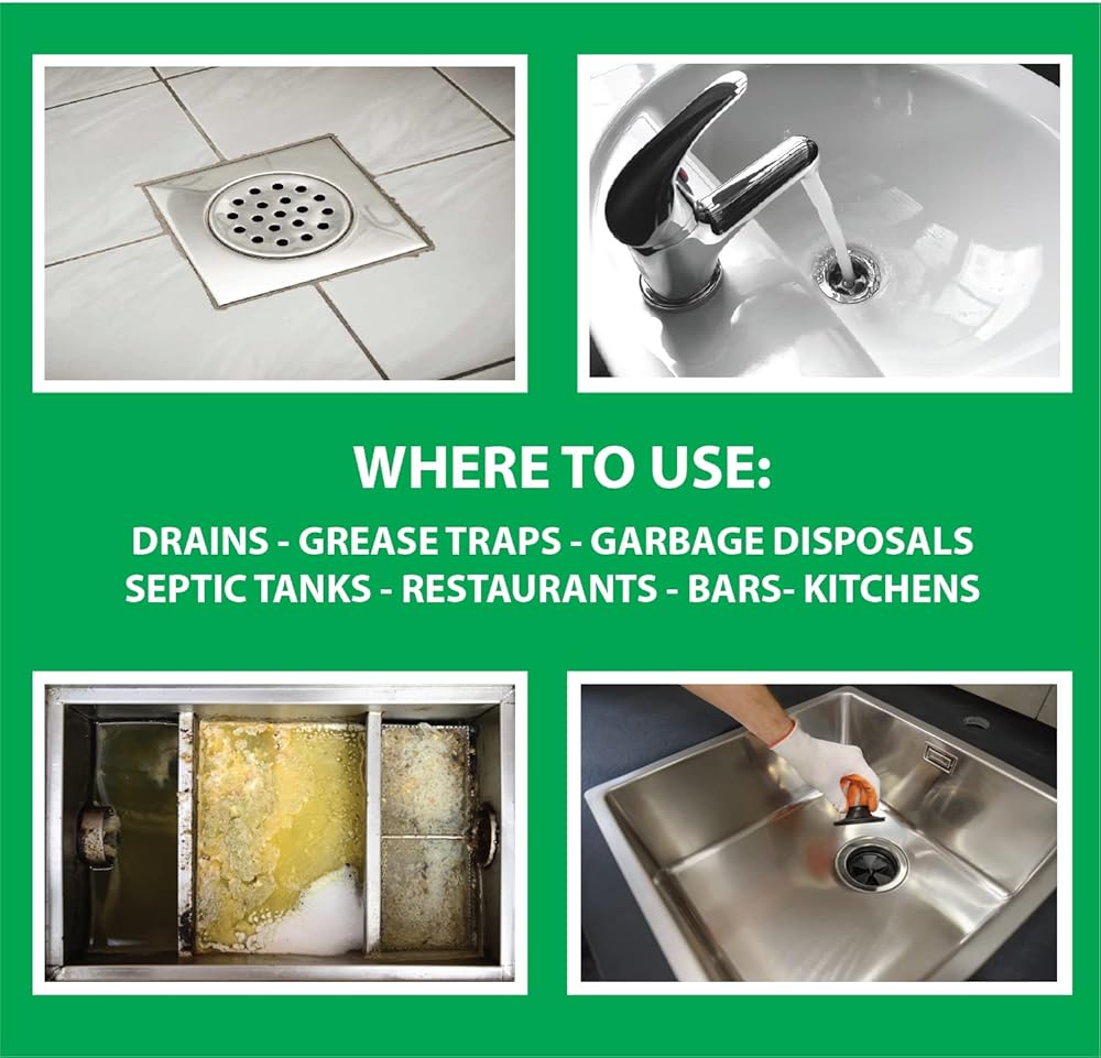 - ✔️تركيبة طبيعية وآمنة واحترافية: جميع تركيبة الإنزيمات الطبيعية والآمنة تهضم بيولوجيًا تراكمات الطعام والتحلل التي هي مصدر المشكلة.