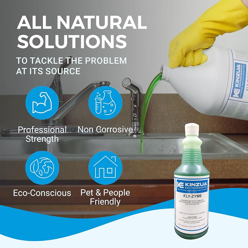 فلاي زيم | جل إنزيم التصريف فائق القوة | استنزاف الفاكهة ومزيل FlyZyme | منظف وعلاج إنزيمي عالي التركيز | صديقة للبيئة وآمنة للأنابيب (32 أونصة سائلة)