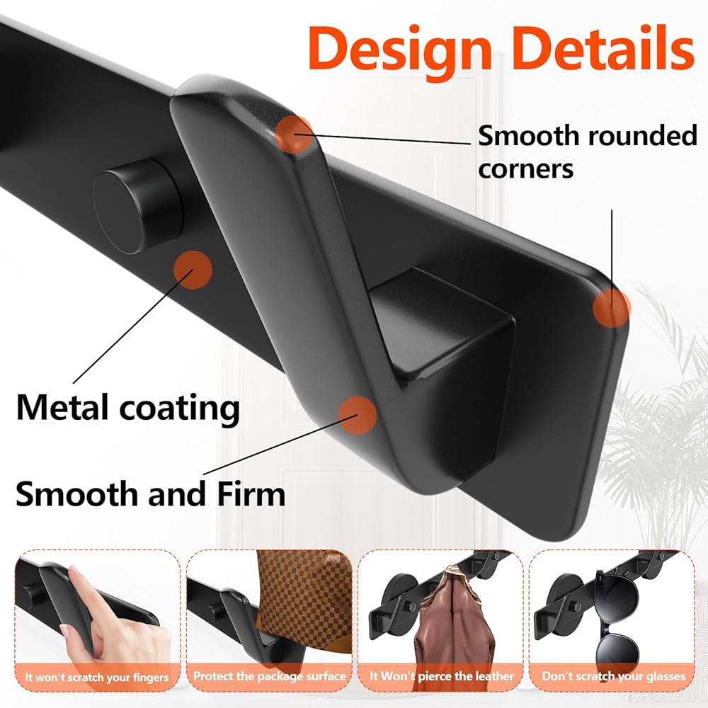 • 【تصميم بسيط】تتميز شماعة المعطف المغناطيسية بتصميم متكامل مع 4 خطافات، بينما تم تصميم الخطافات بزوايا مستديرة، وهي ليست عملية فقط، ولكنها تضيف أيضًا جوًا أنيقًا وبسيطًا إلى غرفتك.