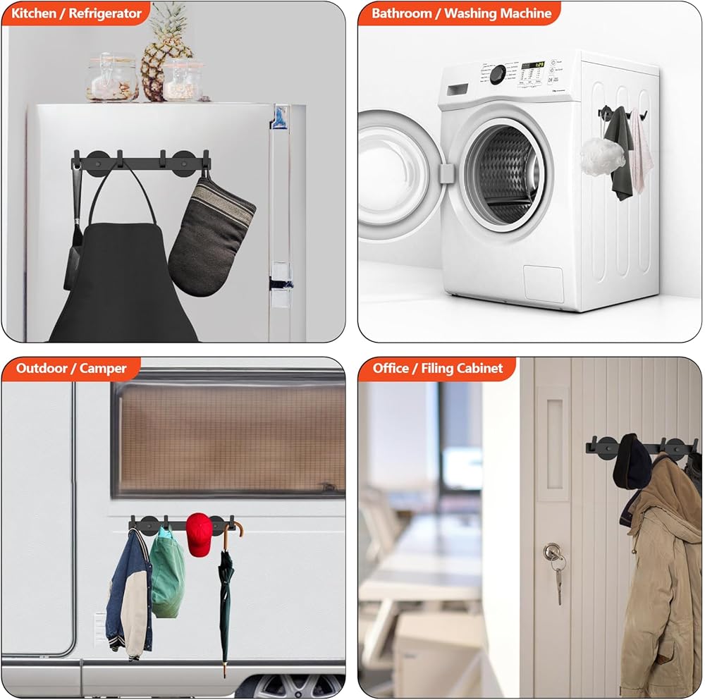 خطافات حامل المعاطف المغناطيسية، خطافات مغناطيسية قوية لتعليق المعاطف والحقائب، رف تعليق مغناطيسي للباب المعدني/الثلاجة/الغسالة/خزانة المكتب، أسود (4 خطافات)