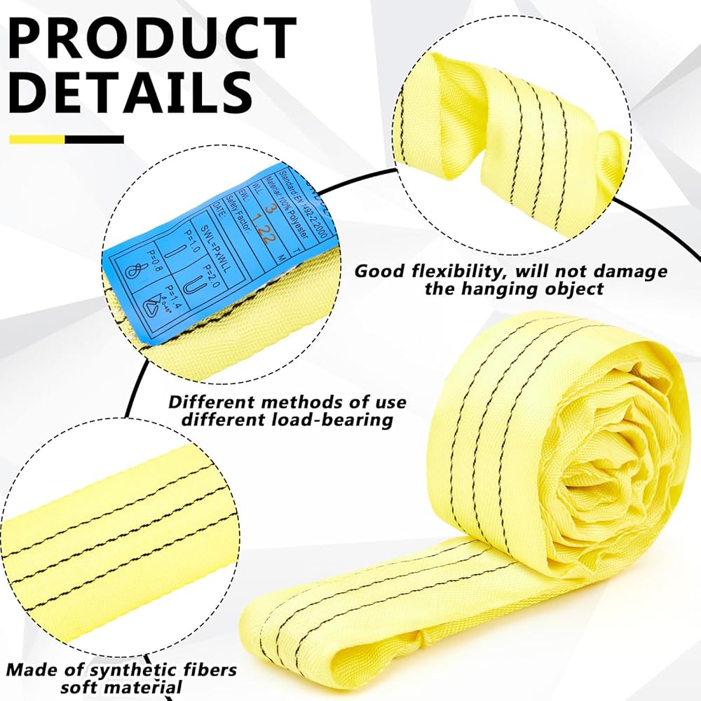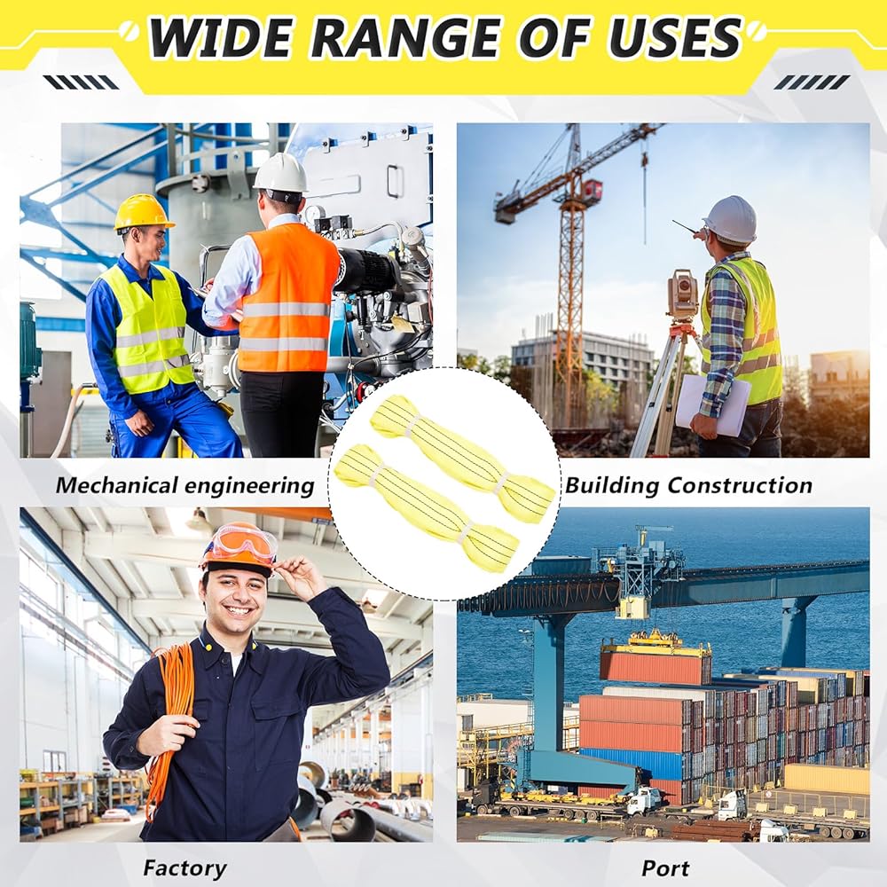 سعة الدعم: يبلغ طول حزام الرفع من البوليستر حوالي 3.94 قدم وعرضه 0.16 قدم عند الحمل، ويمكنه تحميل 5300 رطل عموديًا، ويحمل قلادة بوزن 4240 رطلًا ويحمل سلة بوزن 10600 رطل.