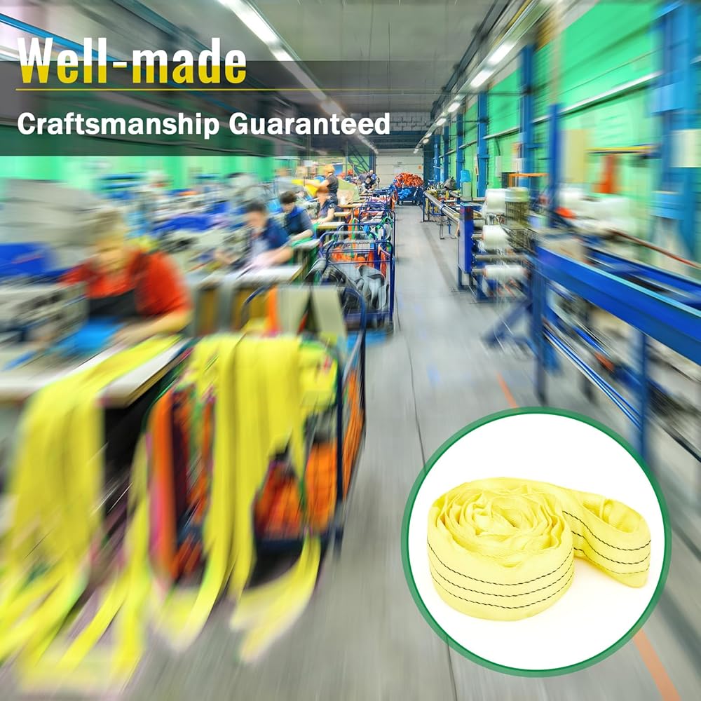 خامة عالية الجودة: حبال رفع دائرية من البوليستر مصنوعة من البوليستر، وهو منخفض التمدد ومرن لدعم شكل الحمل بشكل آمن ومشدود.