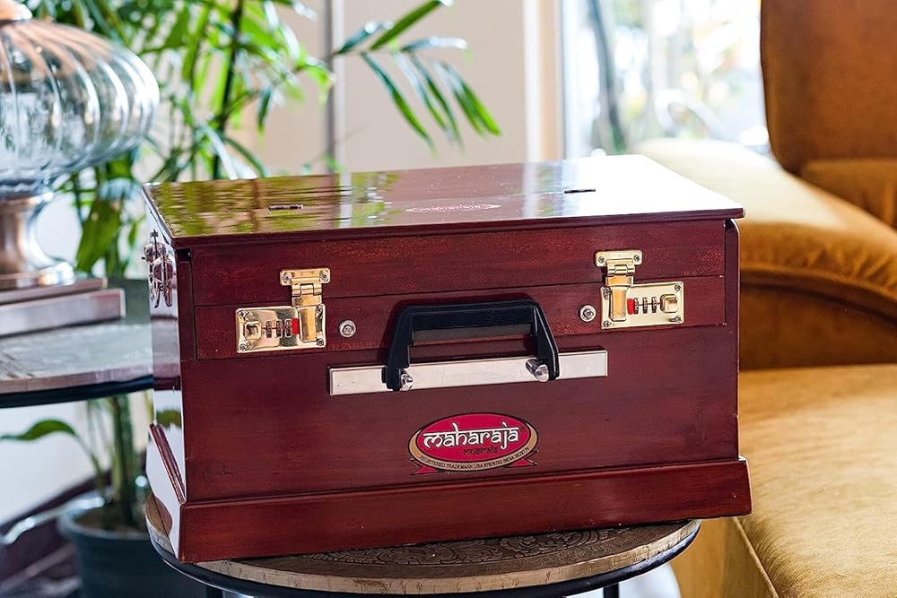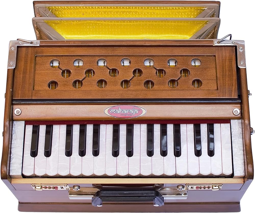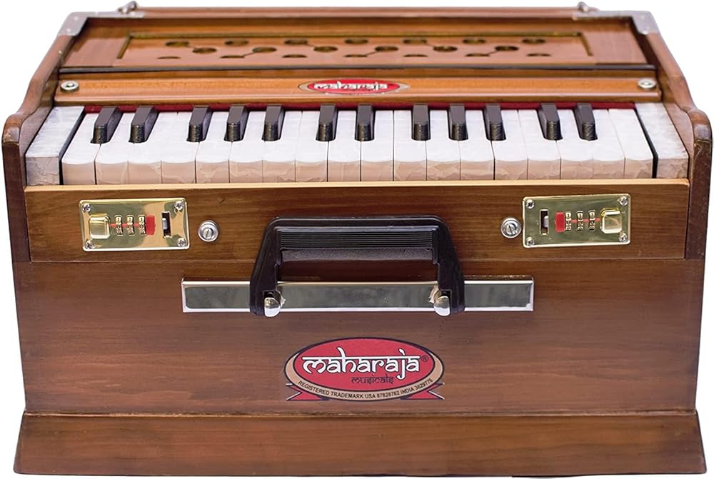 هارمونيوم محمول، مسرحيات مهراجا الموسيقية، صغير، 2 1/4 أوكتاف سابتاك، 3 طيات أسفل، 17 × 10 × 10 بوصة، مقبض، حقيبة، رفيق يوجا كيرتان، تحقق من الفيديو للحصول على صوت مذهل، أداة هارمونيوم مصنوعة يدويًا، -PH1