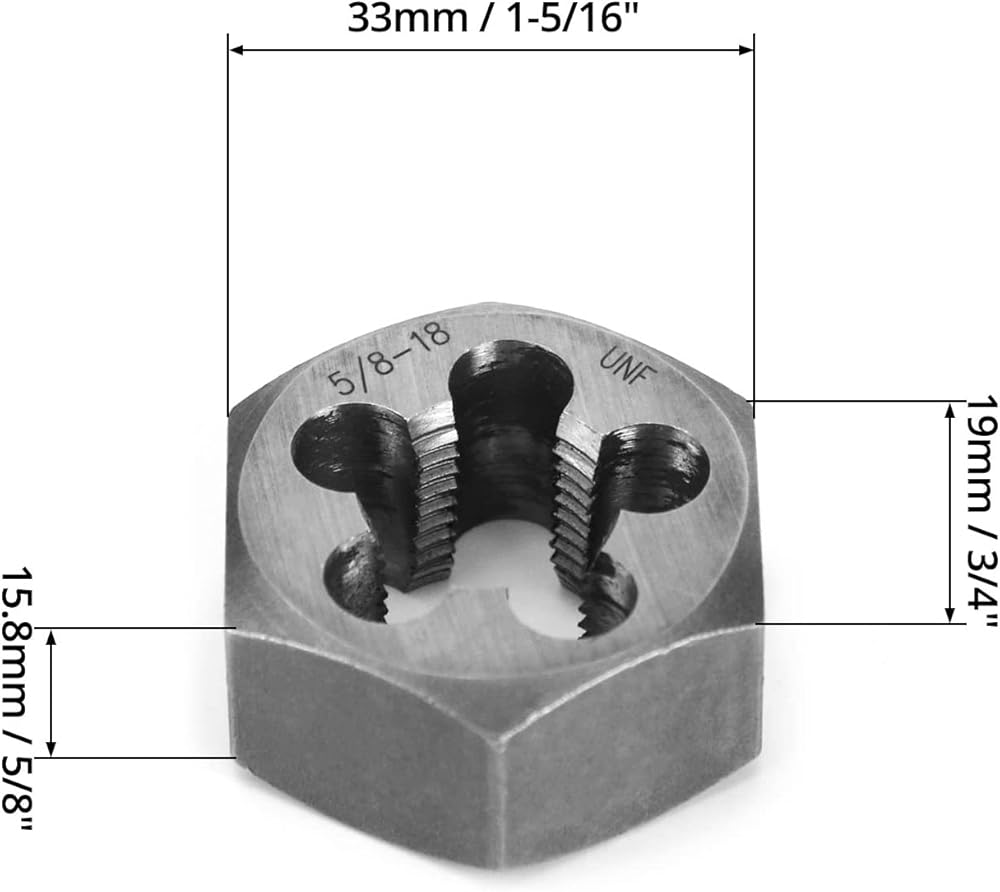 قالب QWORK سداسي الشكل 5/8-18 من الفولاذ الكربوني UNF، متين لاستخراج قالب الصنبور