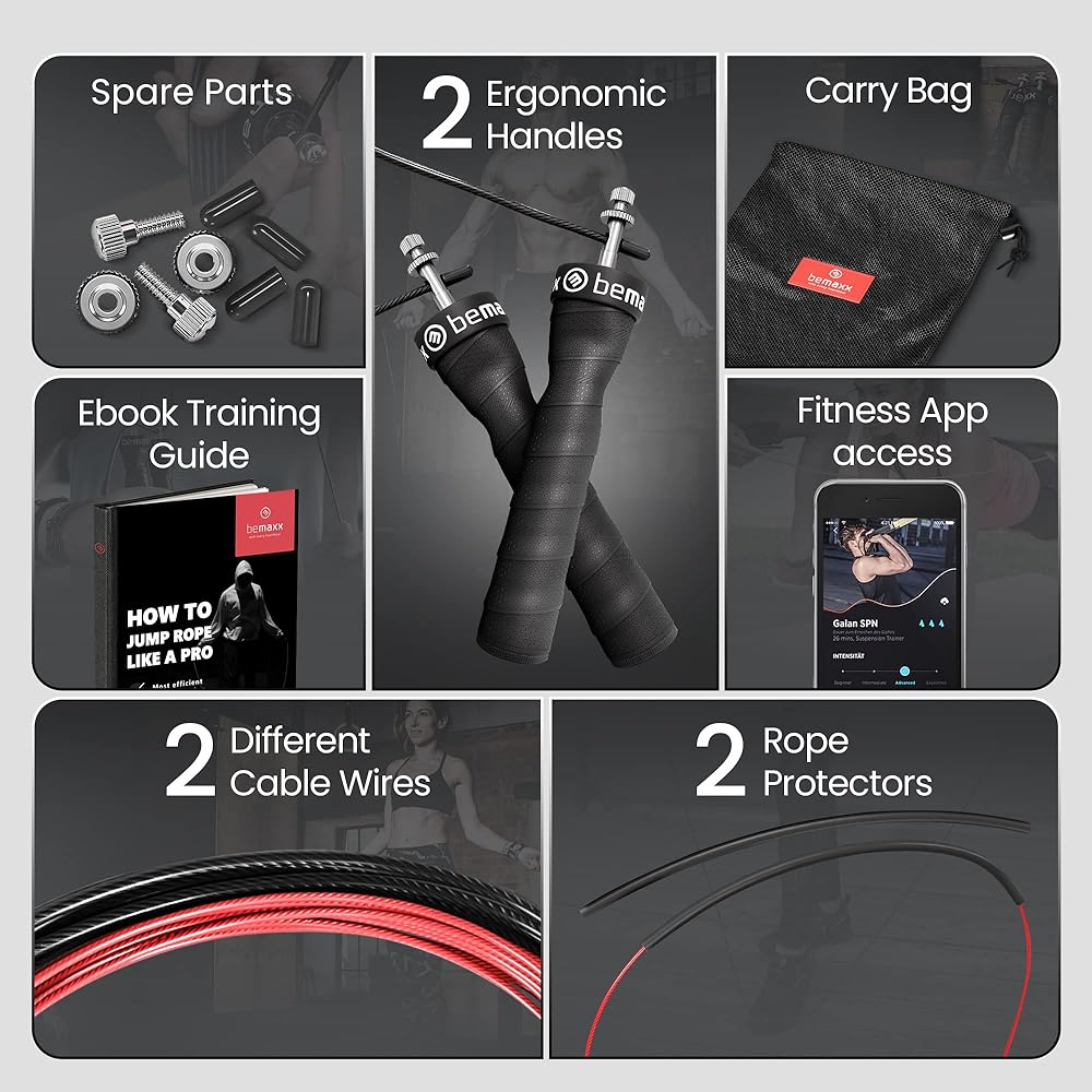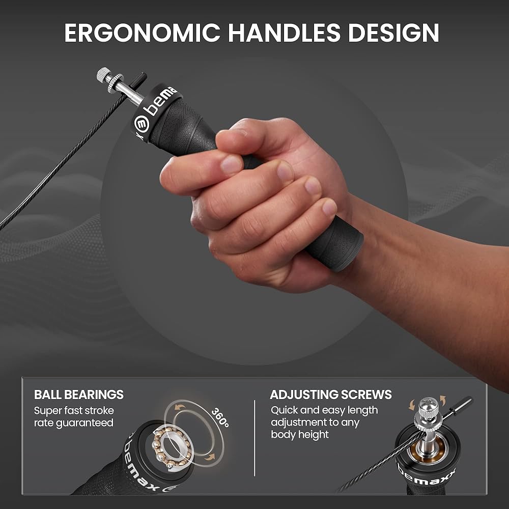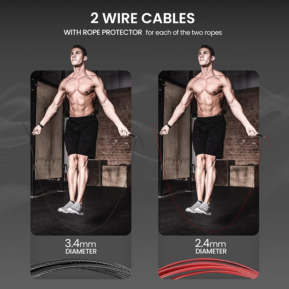 💪 . 𝗖𝗜𝗦𝗘 𝗢𝗣𝗣𝗢𝗥𝗧𝗨𝗡𝗜𝗧𝗜𝗘𝗦 - أدوات WOD المدمرة، وDouble Down Unders، وMMA، والملاكمة، وكمال الأجسام، وتدريبات اللياقة البدنية الشخصية والتدريبات المنزلية والخارجية - يتيح دوران محمل الكرة الفريد من نوعه المصنوع من الفولاذ المقاوم للصدأ بزاوية 90 درجة الدوران بسرعة وسهولة فائقة نينغ و عدد دورات أعلى بكثير من حبال القفز العادية.